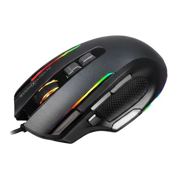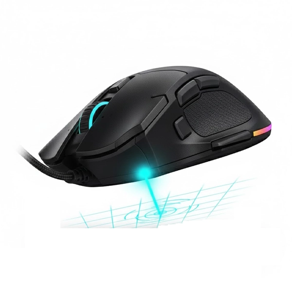 • ویژگی ها: •نرخ نمونه گیری ۱۲۵ هرتز •دارای نورپردازی RGB •دارای دکمه های شلیک و ماکرو با نرم افزار چند منظوره •دارای وزن اضافی داخل موس برای پایداری بیشتر •دارای میکرو سوئیچ با طول عمر ۱۰ میلیون •دارای کابل ضد پیچش و با حلقه ی مغناطیسی