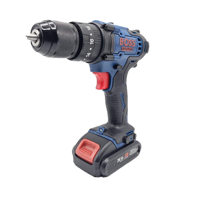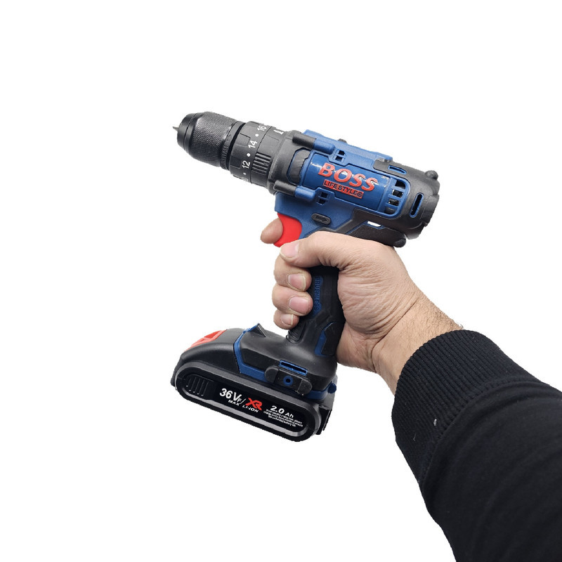 مجموه 100 عددی با دریل شارژی چکشی 36 ولت باس BOSS : امروزه دریل ها در انواع شارژی و برقی تولید شده اند که هر کدام از آن ها ویژگی های خاص خود را دارند. مدل های شارژی با باتری همراه می شوند و موجب می شوند بدون محدودیت بتوانید کار سوراخ کاری را انجام دهید. دریل شارژی 36 ولت باس یکی از این ابزار الات صنعتی است که با کیفیت عالی و عملکرد مناسب نتیجه مطلوبی را برای شما حاصل میکند. این محصول دارای قابلیت کنترل سرعت است. به کمک این محصول که مجهزبه دو گیربکس است میتوانید عملیات سوراخ کاری را با کنترل کافی و کیفیت خوب به انجام برسانید. این دریل دارای چراغ کار است. با استفاده از این وسیله شما میتوانید به آسانی هر سطحی مانند چوب یا فلز را سوراخ و هر نوع پیچی را تند یا شل کنید. دریل شارژی باس نیروی خود را از طریق دو باتری 36 ولت لیتیوم یون تامین میکند. این محصول دارای ترکمتر 18 حالته است. همچنین میزان گشتاور برای انواع پیچ ها قابل تنظیم بوده و می توانید دستی آن را انتخاب نمایید. این دستگاه دارای جعبه ی همراه در اختیار شما قرار داده میشود. این موضوع خیال شما را بابت نگه داری و حمل این دستگاه راحت میکند.
