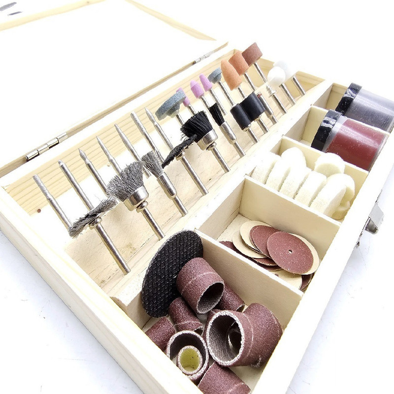 مجموعه مته فرز انگشتی ۱۰۰ عددی با جعبه چوبی از برند معتبر اوکی که بسیار باکیفیت و کاربردی میباشد که امکان استفاده توسط فرز انگشتی و انواع دریل را دارا می باشد و همچنین توانایی استفاده در ؛ چوب، فلز، شیشه، پلاستیک، کائوچو، سفال، سنگ، سرامیک و غیره را دارد و این مجموعه دارای ۱۰۰ عدد سری کاربردی مختلف که عبارتند از : پولیش ریز و درشت و صفحه برش و ساب و سنباده صفحه ای و سنباده رولی و انگشتی فلزی و انگشتی سنگی و روغن و فرچه لاستیکی و سیمی و یک عدد کیف حمل چوبی درجه یک همراه این مجموعه جذاب می باشد