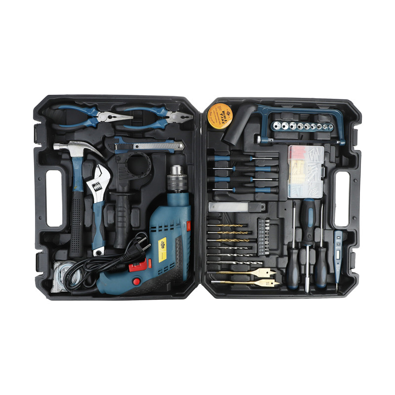 | سایر توضیحات | یک جعبه ابزار 110 عددی که دارای یک عدد دریل چکشی همراه سری با اندازههای مختلف برای استفاده آسانتر است. یک جعبه ابزار کاملا کاربردی برای هر موقعیت مکانی، کم حجم با حمل آسان کیف ابزار، انبردست، آچار فرانسه، پیچ گوشتی، چکش، سری پیچگوشتی، آچار بکس، سری بکس، فازمتر، انبر دم باریک، متر، کاتر، پیچ، رولپلاک، چسبپ، دریل پیچگوشتی، مته، تیغ کاتر و …. |
