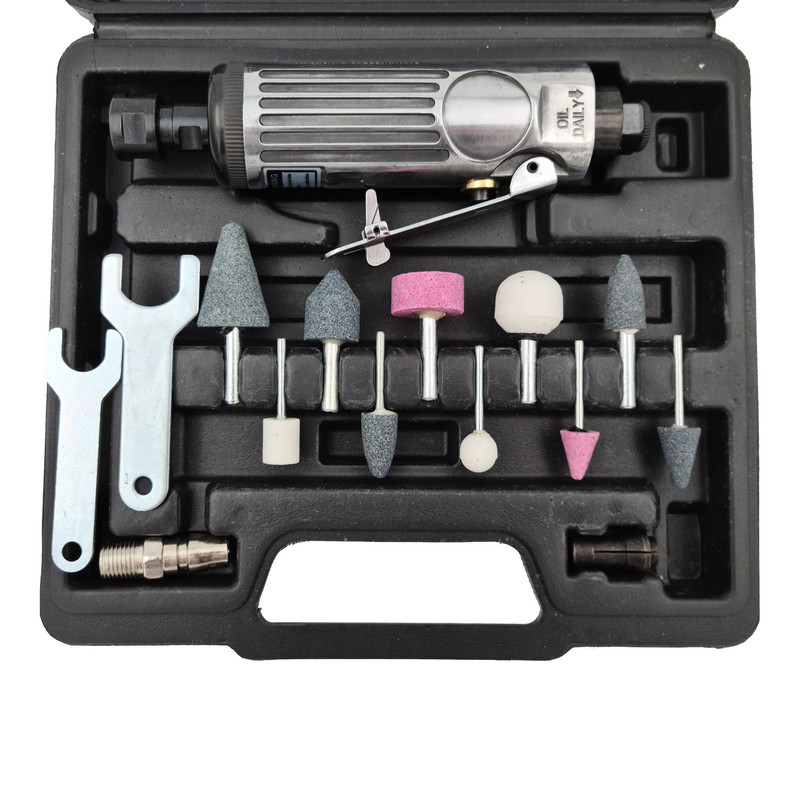 مجموعه 16 عددی فرز انگشتی بادی Air Die یک ابزار حرفهای برای پرداخت کاری، حکاکی، فرز کاری، سنگ زنی، پولیش کاری و … است که در صنایع مختلفی کاربرد دارد.