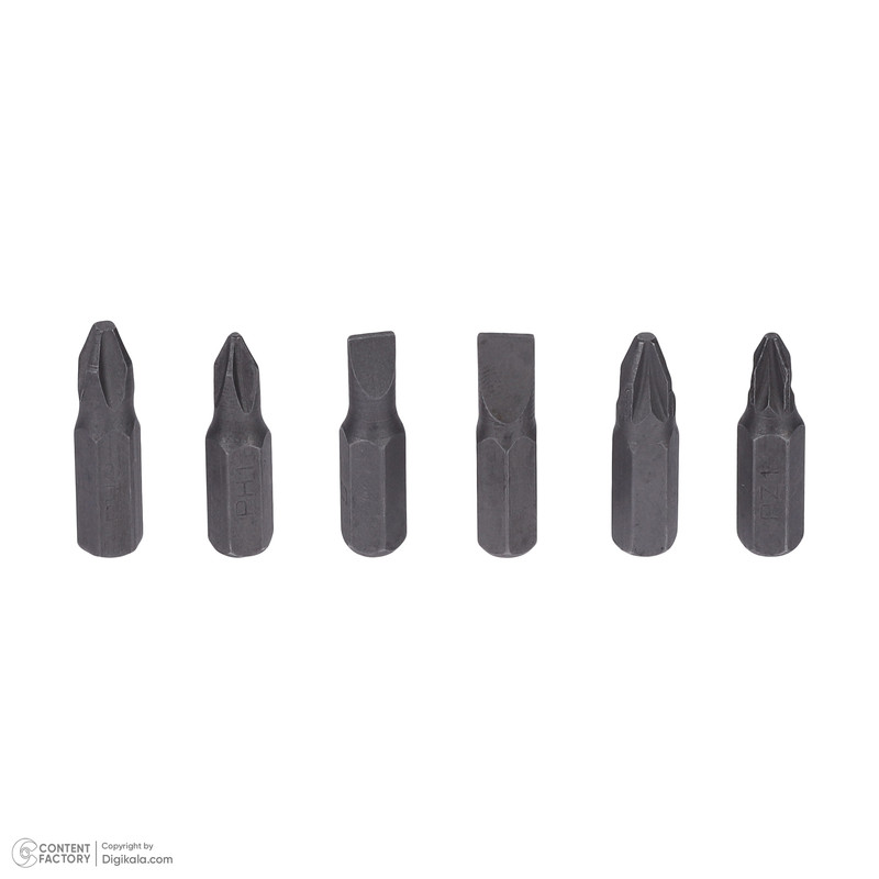 | مشخصات اقلام همراه | دارای 6 عدد سری پیچ گوشتی و افزایش دهنده طول سری و شش عدد مته – كيف |