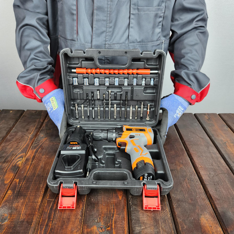 | سایر توضیحات | کیفیت و قدرت دستگاه قابل توجه است. ✔ دو عدد باتری 18 ولت تاریخ جدید دارد. ✔ پایه شارژر دارد. ✔ فست شارژ می باشد ✔ گیربکس دو دور دارد. ✔ دور 0 تا 350 و 0 تا 1350 دور بر دقیقه است. ✔ قابلیت کنترل سرعت فشاری دارد. ✔ به همراه لوازم همراه انواع مته، بکس، نوک پیچگوشتی، رابط و … است. ✔ چراغ قوه روی بدنه دستگاه جهت محیطهای کم نور دارد. ✔نمایشگر میزان شارژ روی بدنه دارد ✔ موتور بزرگ و تمام مس دارد.. |
