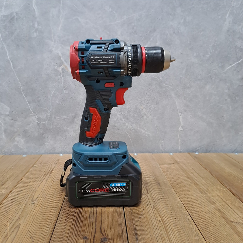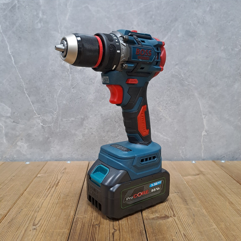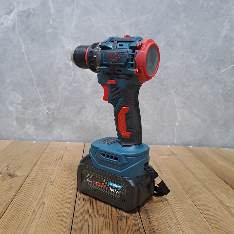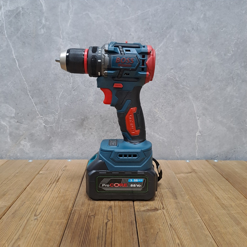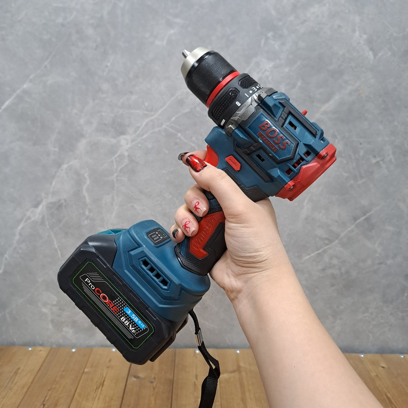 دریل شارژی مدل LIFE _ STYLE براشلس از محصولات برند معتبر شرکت BOOS می باشد . موتورهای براشلس نسل جدید موتورهای الکترومغناطیسی هستند. این الکتروموتورها با برق دی سی کار میکنند و مزایای زیادی نسبت به موتورهای معمول براش دارند. در طراحی این موتورها برای روتور از یک آهنربای قدرتمند (معمولا نئودیمیوم) استفاده میشود و سیم پیچ دور روتور قرار دارد. در سیستم موتور دریل براشلس از آهن ربا استفاده می شود که اصطکاک در آن از بین می رود. در حین کار گشتاور بیشتری به وجود می آورد و انرژی الکتریکی را با سرعت بالا به انرژی مکانیکی تبدیل می کند. در دریل های شارژی براشلس سرعت بیشتری نسبت به دریل شارژی معمولی ایجاد می شود و از آنها می توان در موارد مختلف و متنوعی استفاده کرد. موتورهای براشلس اندازه ی کوچکتری نسبت به موتورهای براش دارند و سبکتر نیز هستند. موتورهای براشلس گشتاور خطی تری داشته و در لحظه ی استارت گشتاور اولیه بیشتری تولید میکنند.دارای کلید گازی . موتورهای براشلس عمر مفید بسیار بیشتری نسبت به موتورهای قدیمی دارند و نیازی به نگهداری و تعویض ذغال ندارند. بسیاری از ابزار های برقی با موتور براشلس عرضه میشوند. زیرا سالها عمر بدون افت قدرت در این موتورها تضمین شده است موتورهای براشلس قادرند به سرعت های بالاتری نسبت به موتورهای عادی برسند (تا 100هزار دور) و توانایی کنترل سرعت دقیق را دارا هستند.این دریل شارژی 88 ولت براشلس باس دارای امکاناتی از قبیل موتور براشلس و دارای سه نظام فلزی و دارای نشانگر میزان شارژ باتری و دو عدد باتری 88 ولت و گیربکس دو دورقدرتمند و دور 0 تا 450 و 0 تا 1600دور بر دقیقه و قابلیت کنترل سرعت فشاری و به همراه لوازم کامل ازجمله ؛ مته آهن( سایز ۳، ۴ و ۵ میلیمتر)، مته چوب( سایز ۳، ۴ و ۵ میلیمتر)، رابط فنری تاشونده، سه عدد نوک پیچ گوشتی چهارسو و دو عدد دو سو ، دو عدد نوک پیچگوشتی t20 و t15، بکس(سایز ۴.۵، ۵، ۶، ۷، ۸، ۹، ۱۰، ۱۱، ۱۲ میلیمتر) و تبدیل بکس خور سر دریلی سایز ۱/۴ می باشد و همچنین چراغ قوه بزرگ روی بدنه دستگاه جهت محیط های کم نور و موتور قدرتمند و تمام مس و همچنین داشتن کیف BMC از مزیتهای دیگر این دریل شارژی 88ولت براشلس بینظیر می باشد.
