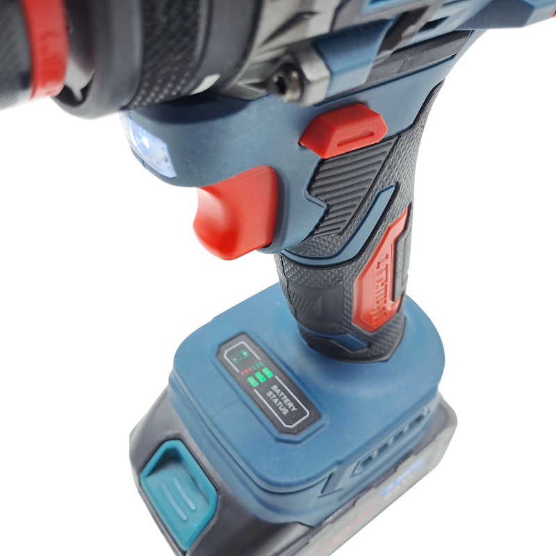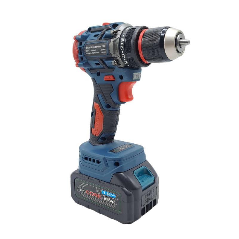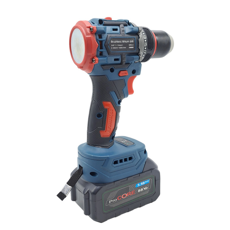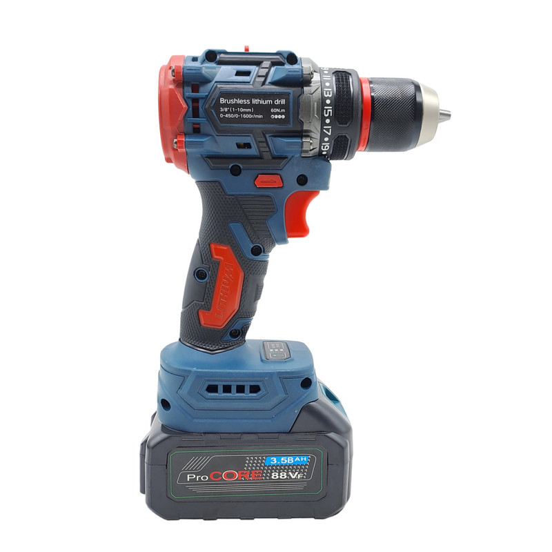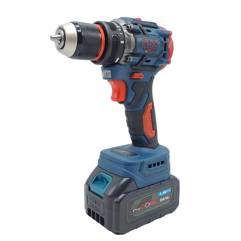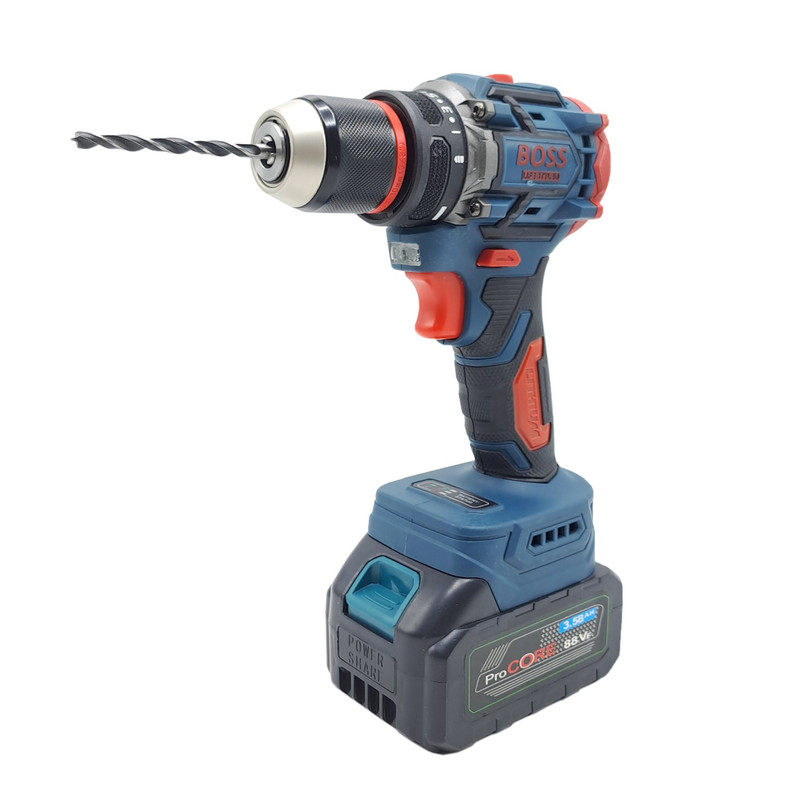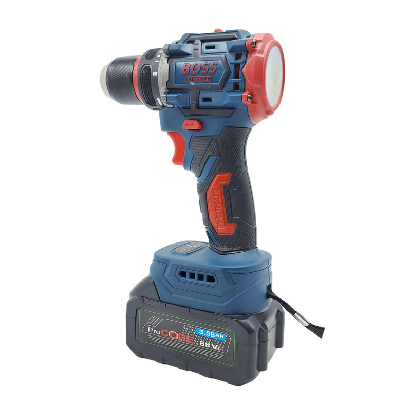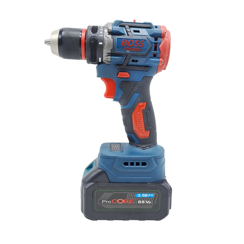 دریل شارژی مدل 88VF براشلس از محصولات برند معتبر شرکت BOOS می باشد . موتورهای براشلس نسل جدید موتورهای الکترومغناطیسی هستند. این الکتروموتورها با برق دی سی کار میکنند و مزایای زیادی نسبت به موتورهای معمول براش دارند. در طراحی این موتورها برای روتور از یک آهنربای قدرتمند (معمولا نئودیمیوم) استفاده میشود و سیم پیچ دور روتور قرار دارد. در سیستم موتور دریل براشلس از آهن ربا استفاده می شود که اصطکاک در آن از بین می رود. در حین کار گشتاور بیشتری به وجود می آورد و انرژی الکتریکی را با سرعت بالا به انرژی مکانیکی تبدیل می کند. در دریل های شارژی براشلس سرعت بیشتری نسبت به دریل شارژی معمولی ایجاد می شود و از آنها می توان در موارد مختلف و متنوعی استفاده کرد. موتورهای براشلس اندازه ی کوچکتری نسبت به موتورهای براش دارند و سبکتر نیز هستند. موتورهای براشلس گشتاور خطی تری داشته و در لحظه ی استارت گشتاور اولیه بیشتری تولید میکنند.دارای کلید گازی . موتورهای براشلس عمر مفید بسیار بیشتری نسبت به موتورهای قدیمی دارند و نیازی به نگهداری و تعویض ذغال ندارند. بسیاری از ابزار های برقی با موتور براشلس عرضه میشوند. زیرا سالها عمر بدون افت قدرت در این موتورها تضمین شده است موتورهای براشلس قادرند به سرعت های بالاتری نسبت به موتورهای عادی برسند (تا 100هزار دور) و توانایی کنترل سرعت دقیق را دارا هستند.این دریل شارژی 88 ولت براشلس باس دارای امکاناتی از قبیل موتور براشلس و دارای سه نظام فلزی و دارای نشانگر میزان شارژ باتری و دو عدد باتری 88 ولت و گیربکس دو دورقدرتمند و دور 0 تا 450 و 0 تا 1600دور بر دقیقه و قابلیت کنترل سرعت فشاری و به همراه لوازم کامل ازجمله ؛ مته آهن( سایز ۳، ۴ و ۵ میلیمتر)، مته چوب( سایز ۳، ۴ و ۵ میلیمتر)، رابط فنری تاشونده، سه عدد نوک پیچ گوشتی چهارسو و دو عدد دو سو ، دو عدد نوک پیچگوشتی t20 و t15، بکس(سایز ۴.۵، ۵، ۶، ۷، ۸، ۹، ۱۰، ۱۱، ۱۲ میلیمتر) و تبدیل بکس خور سر دریلی سایز ۱/۴ می باشد و همچنین چراغ قوه بزرگ روی بدنه دستگاه جهت محیط های کم نور و موتور قدرتمند و تمام مس و همچنین داشتن کیف BMC از مزیتهای دیگر این دریل شارژی 88ولت براشلس بینظیر می باشد.