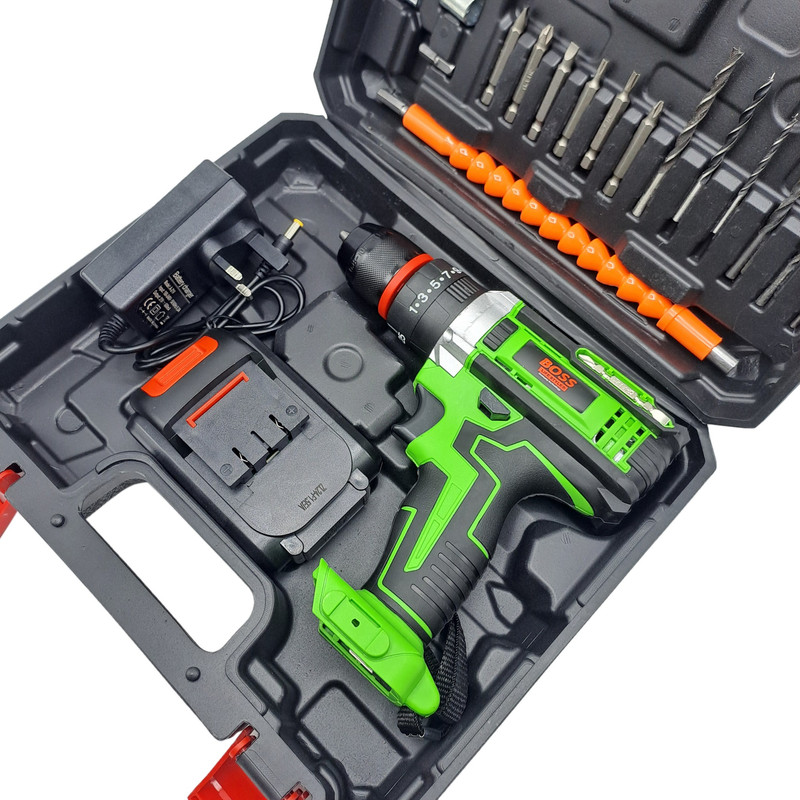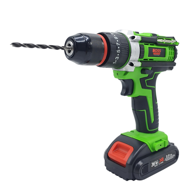 یکی از ابزارهای کارامد در بخش تعمیرات و نگهداری منازل و کارگاه ها، مجموعه دریل پیچ گوشتی شارژی BOSS می باشد که به عنوان یک نیاز مهم در این بخش مورد توجه قرار گرفته است. مجموعه29 عددی دریل پیچ گوشتی شارژی 36 ولت برند BOSS از موتوری قدرتمند با حداکثر سرعت گردش آزاد معادل با 0 تا 950 دور قدرتی 0 تا 2500دور سرعتی بر دقیقه برخوردار میباشد. طراحی موتور دستگاه بهگونهای است که کاربران میتوانند سرعت دریل را از طریق دکمه تعبیه شده در بالای دریل تغییر دهند. علاوه بر این کلید گازی مشکی رنگ نیز امکان تنظیم سرعت چرخش سهنظام را برای استفادهکنندگان فراهم میکند. طراحی ارگونومی پیشرفته و سبکی این دریل شارژی (وزن دریل 1.2 کیلو گرم) مزیت مهمی در بهبود کیفیت کار و جلوگیری از خستگی موثر بهشمار میرود و آن را برای انواع استفادههای خانگی و کارگاهی مناسب می نماید. همچنین دریل پیچ گوشتی شارژی BOSS دارای ترکمتر 1+25 حالته (با امکان انتخاب حالت، پیچ و دریل) و کلید تغییر جهت (چپگرد و راستگرد) میباشد .این محصول دارای 1 باتری 36 ولت و یک عدد شارژر فست شارژ داخل یک کیف BMC مستحکم قرار دار
