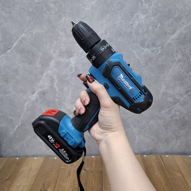 دریل چکشی شارژی 48 ولت مسترز مدل کد 01 دارای موتوری قدرتمند است که میتواند به حداکثر دور موتوری برابر با 1350 دور بر دقیقه در حالت آزاد دست پیدا کند. تورکمتر 25 به اضافه حالت پیچ، حالت مته و حالت چکشی که روی سه نظام دستگاه تعبیه شده به کاربران این امکان را میدهد که بنا به موقعیت بتوانند از قدرت های متفاوت این دریل شارژی قدرتمند استفاده کنند. و دکمه ی مجزا 2 سرعته تعبیه شده برای این محصول کاربران را قادر میسازد تا با توجه به نیاز خود بتوانند سرعت و قدرت گردش این دریل را تنظیم نمایند. به تمامی امکاناتی که اشاره شد کلید گازی این محصول برای تنظیم سرعت را اضافه کنید و کلید تغییر حالت گردش چپگرد-راستگرد تعبیه شده برای این محصول به کاربران کمک میکند تا بدون هیچ مشکلی به باز و بستن پیچها و سوراخکاری در متریالهای مختلف بپردازد. از دیگر مزایای این محصول میتوان به نمایشگر شارژر باطری روی بدنه و چراغ ال ای دی برای روشن کردن محل سوراخکاری و داشتن 2 باطری لتیومی 48 ولت میباشد و و شارژر سوزنی اشاره کرد. سه نظام تعبیه شده برای این محصول از نوع اتوماتیک با سایز 10 میلیمتری بوده که با دقت بالایی ساخته شده است همچنین وجود ست کامل از سریها و متههای مورد نیاز و متداول در یک کیف BMC پرتابل عرضه میگردد، تا کاربران نگرانی بابت صدمه دیدن محصول برای حمل و جابه جایی نداشته باشند.