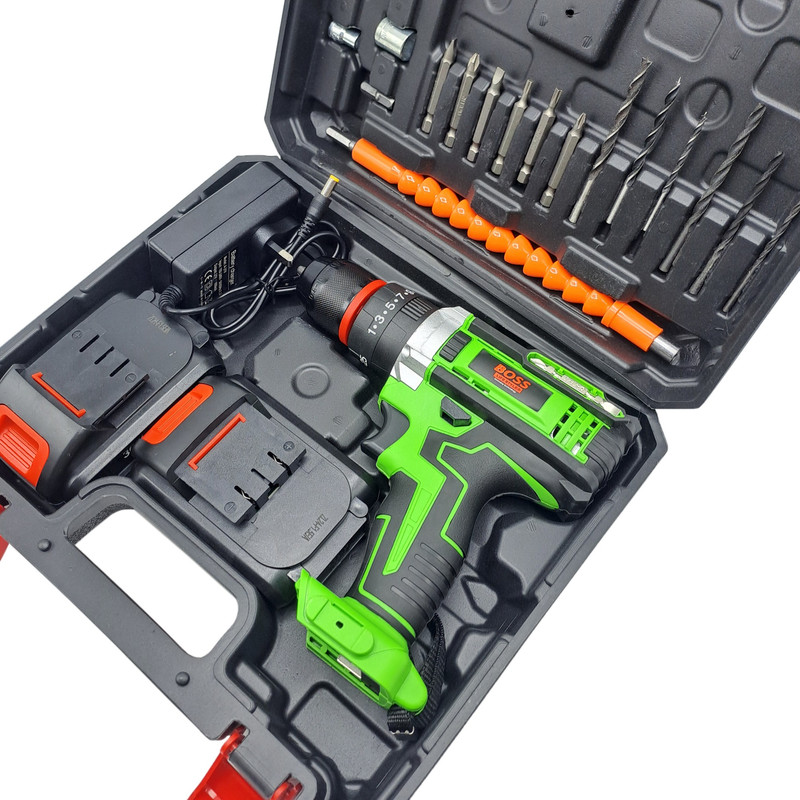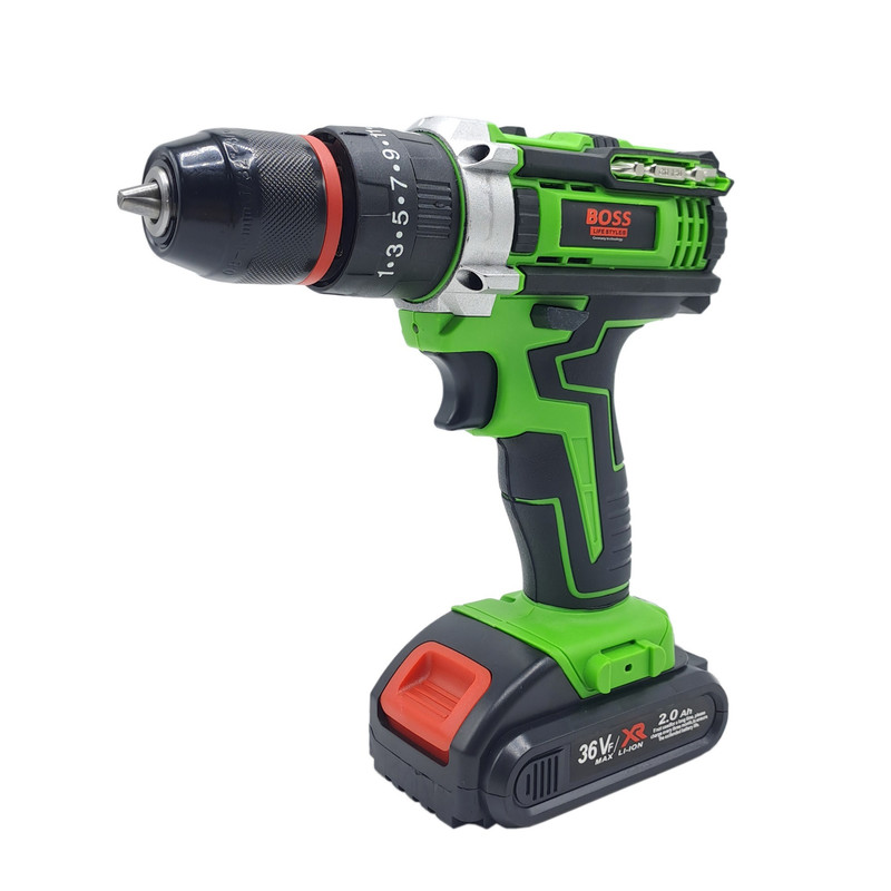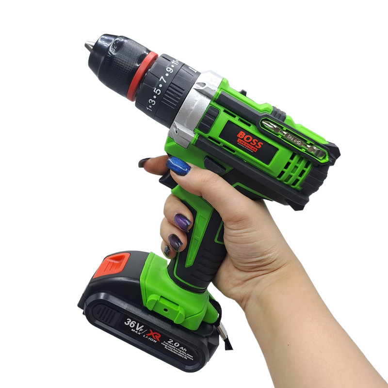 یکی از ابزارهای کارامد در بخش تعمیرات و نگهداری منازل و کارگاه ها، مجموعه دریل پیچ گوشتی شارژی BOSS می باشد که به عنوان یک نیاز مهم در این بخش مورد توجه قرار گرفته است. مجموعه29 عددی دریل پیچ گوشتی شارژی 36 ولت برند BOSS از موتوری قدرتمند با حداکثر سرعت گردش آزاد معادل با 0 تا 950 دور قدرتی 0 تا 2500دور سرعتی بر دقیقه برخوردار میباشد. طراحی موتور دستگاه بهگونهای است که کاربران میتوانند سرعت دریل را از طریق دکمه تعبیه شده در بالای دریل تغییر دهند. علاوه بر این کلید گازی مشکی رنگ نیز امکان تنظیم سرعت چرخش سهنظام را برای استفادهکنندگان فراهم میکند. طراحی ارگونومی پیشرفته و سبکی این دریل شارژی (وزن دریل 1.2 کیلو گرم) مزیت مهمی در بهبود کیفیت کار و جلوگیری از خستگی موثر بهشمار میرود و آن را برای انواع استفادههای خانگی و کارگاهی مناسب می نماید. همچنین دریل پیچ گوشتی شارژی BOSS دارای تورکمتر 1+25 حالته (با امکان انتخاب حالت، پیچ و دریل) و کلید تغییر جهت (چپگرد و راستگرد) میباشد .این محصول دارای دو باتری 36 ولت و یک عدد شارژر فست شارژ داخل یک کیف BMC مستحکم قرار دارد .