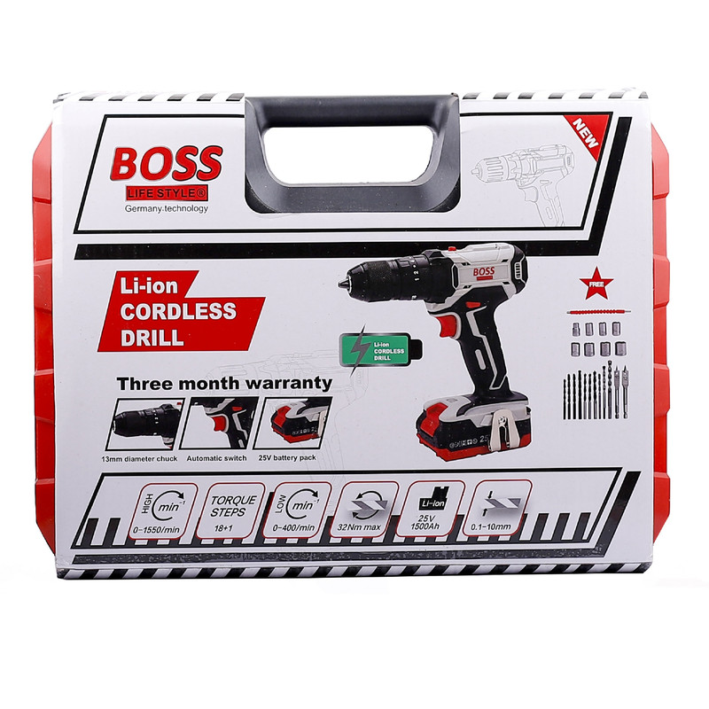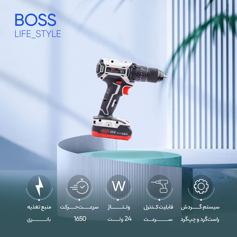 دریل پیچ گوشتی چکشی شارژی مدل LIFE_STYLE یکی دیگر از محصولات کمپانی باس جنتلمن هنرکار است که با عرضه در ابزار فروش شهر در دیجی کالا یکی از بزرگترین پلتفرم های فروش در بازار اینترنتی ایران است به همراه داشتن دریل پیچگوشتی در کنار کیف ابزار، در انجام کارهای تعمیراتی کمکی زیادی به شما خواهد کرد. این دستگاه جایگزین مناسبی برای پیچگوشتیهای معمولی است و موجب بالارفتن سرعت کاربر در حین کار میشود و باید برای این منظور مجموعهای کامل از سریهای پیچگوشتی تهیه کنید. دریل پیچ گوشتی شارژی باس مدل LIFE_STYLE با توجه به سرعت چرخش مناسبی که دارد، در حالت دریل نیز عملکرد خوبی خواهد داشت. دارای سه نظام 13 میلیمتر خودکارو فلزی می باشد. سرعت این محصول قابلکنترل است و کاربر میتواند آن را در دو بازهی 0 تا 450 و 0 تا 1650 دور بر دقیقه تنظیم کند. گشتاور این دریل پیچگوشتی نیز مانند سرعت آن قابلتنظیم است. این محصول دارای باتری لیتیومیونی است که ولتاژی 25 ولتی و ظرفیتی بالایی دارند. وجود روکش لاستیکی برای جلوگیری از لغزش از دیگر مزایای این دستگاه است. از دیگر مزایای این دستگاه کیفیت بالا و قیمت رقابتی ان است