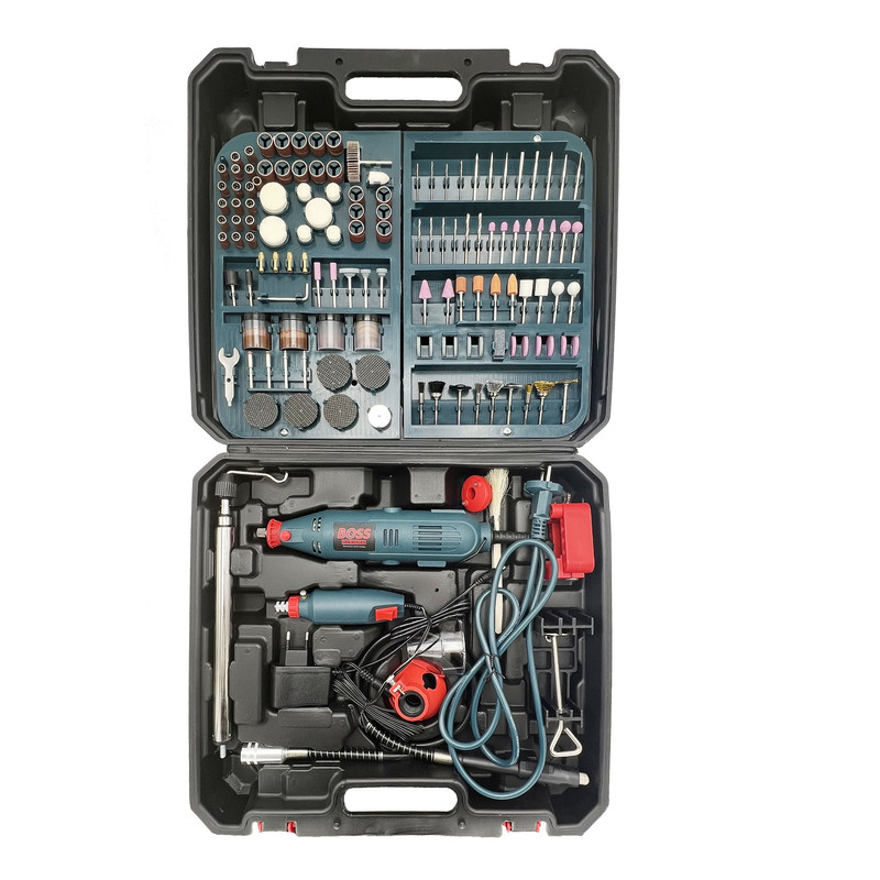 فرز انگشتی 366 پارچه باس یکی از مدل های با کیفیت و کارآمد تولید شده توسط کمپانی باس است. این مدل بسیار با دوام و با کیفیت و البته خوش دست طراحی شده تا بتوانید از آن سالیان طولانی استفاده کنید. خوش دست بودن دستگاه فرز انگشتی باس موجب شده تا در استفاده های طولانی مدت، اصلا احساس خستگی نکنید. فرز انگشتی باس با قطعات مختلف و متنوعی همراه شده اند که همگی بسیار منظم و مرتب در جعبه قرار می گیرند. پس از استفاده از فرز انگشتی می توانید تمامی قطعات را در جعبه قرار دهید تا از گم شدن آن ها جلوگیری شود. فرز باس با موتور 200 واتی و قابلیت تنظیم سرعت تولید شده است. با وجود این موتور خوب و البته قطعات همراه فرز می توانید انواع کارهای مختلف را با فرز انگشتی باس انجام دهید. با استفاده از این فرز می توانید کار فرز کاری، ساب زنی، حکاکی و … را بر روی متریال های مختلفی از جمله سنگ، فلز، پلاستیک، چوب و … انجام دهید. از فرزهای انگشتی می توانید در انواع صنعت های مختلف برای کارهای هنری و خانگی استفاده کنید. فرز انگشتی برای کارهای های ظریف و البته برای استفاده در مکان هایی که دسترسی به آن ها دشوار است می تواند گزینه ای مناسب و ایده آل باشد.