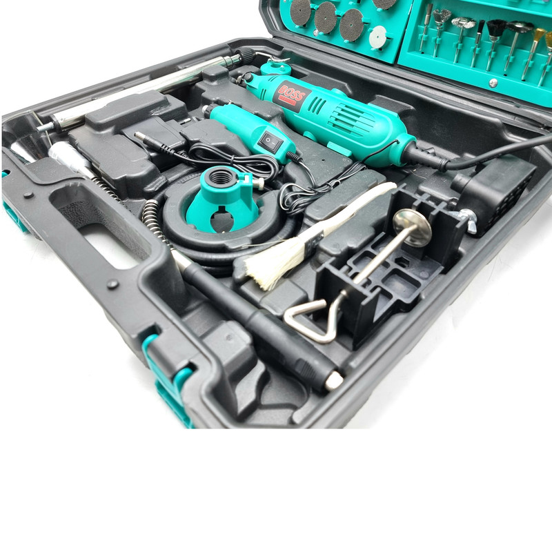 فرز انگشتی 375 پارچه باس یکی از مدل های با کیفیت و کارآمد تولید شده توسط کمپانی باس است. این مدل بسیار با دوام و با کیفیت و البته خوش دست طراحی شده تا بتوانید از آن سالیان طولانی استفاده کنید. خوش دست بودن دستگاه فرز انگشتی باس موجب شده تا در استفاده های طولانی مدت، اصلا احساس خستگی نکنید. فرز انگشتی باس با قطعات مختلف و متنوعی همراه شده اند که همگی بسیار منظم و مرتب در جعبه قرار می گیرند. پس از استفاده از فرز انگشتی می توانید تمامی قطعات را در جعبه قرار دهید تا از گم شدن آن ها جلوگیری شود. فرز باس با موتور 200 واتی و قابلیت تنظیم سرعت تولید شده است. با وجود این موتور خوب و البته قطعات همراه فرز می توانید انواع کارهای مختلف را با فرز انگشتی باس انجام دهید. با استفاده از این فرز می توانید کار فرز کاری، ساب زنی، حکاکی و … را بر روی متریال های مختلفی از جمله سنگ، فلز، پلاستیک، چوب و … انجام دهید. از فرزهای انگشتی می توانید در انواع صنعت های مختلف برای کارهای هنری و خانگی استفاده کنید. فرز انگشتی برای کارهای های ظریف و البته برای استفاده در مکان هایی که دسترسی به آن ها دشوار است می تواند گزینه ای مناسب و ایده آل باشد.