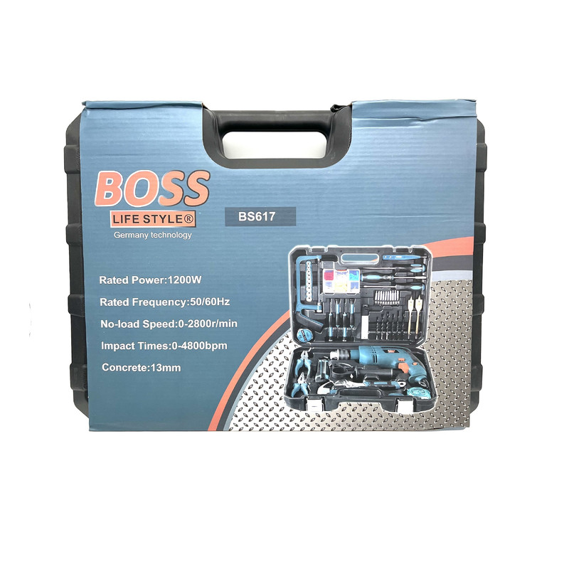 مجموعه ابزار48 عددی باس BOSS به تعدادی وسیله که در کنار یکدیگر قرار می گیرند و همگی کاربرد مشخصی دارند مجموعه ابزار گفته می شود. ابزار شامل انواع آچار، پیچ گوشتی، سوهان، مته، انواع انبر، سیم چین و در این مورد بخصوص دریل چکشی دیمردار و… است. این ابزار ها درون جعبه مخصوصی قرار دارند که ابزار ها در این جعبه مستحکم در جای مخصوص خود بدون بهم ریختگی قرار گرفته اند که این مجموعه ابزار را تشکیل می دهد.