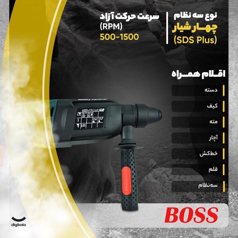 - نوع سهنظام/قلمگیر: SDS Plus (چهار شیار)