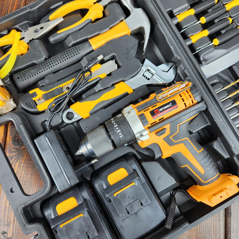 این دستگاه مجموعه ای کامل به همراه انواع ابزار الات جهت تمامی امور خانگی، اداری و … می باشد که دریلی چکشی با سه نظام 13 میلیمتری تمام فلزی دارد که برای کارهای متعدد و سخت قابل استفاده است. گیربکس این دریل تقویت شده و بسیار قدرتمند است و از عهده امور مختلف بر میآید. این دستگاه دارای دو عدد باتری لیتیوم یون 98 ولت می باشد. دریل با گشتاور فوق العاده 35 الی 60 نیوتن متر می باشد. دارای دریل با سرعت 0 الی 600 و 0 الی 1500 دور بر دقیقه می باشد.باتری ها تولید جدید و دستگاه دارای دیمر و تنظیم سرعت می باشد. دارای چراغ جهت کار در محیط های تاریک می باشد قابلیت چپگرد و راستگرد دارد دارای کلیه ابزارهای مصرفی شامل؛ آچار فرانسه سایز 8، انبردست، دمباریک، چکش، بکس تک سایز 4 تا 13 میلیمتر، متر 3 متری، پیچ گوشتی دوسو و چهارسو سایز بزرگ، مته آهن سایز 3، 4 و 5 ، مته چوب سایز 3، 4 ،5 میلیمتر، مته برگی سایز 16 و 20 ، دارای 9 عدد نوک پیچ گوشتی، تبدیل نوک پیچ گوشتی به بکس، چسب برق، کاتر، فازمتر دیجیتال، 5 عدد تیغ کاتر، دو سایز پیچ گوشتی موبایلی دو سو و دو سایز پیچ گوشتی موبایلی چهارسو، کمان اره چوب و فلز، مجموعه سایزبندی پیچ و رولپلاک می باشدکیفیت عالی می باشد همراه کیف BMC حرفه ای عرضه میگردد