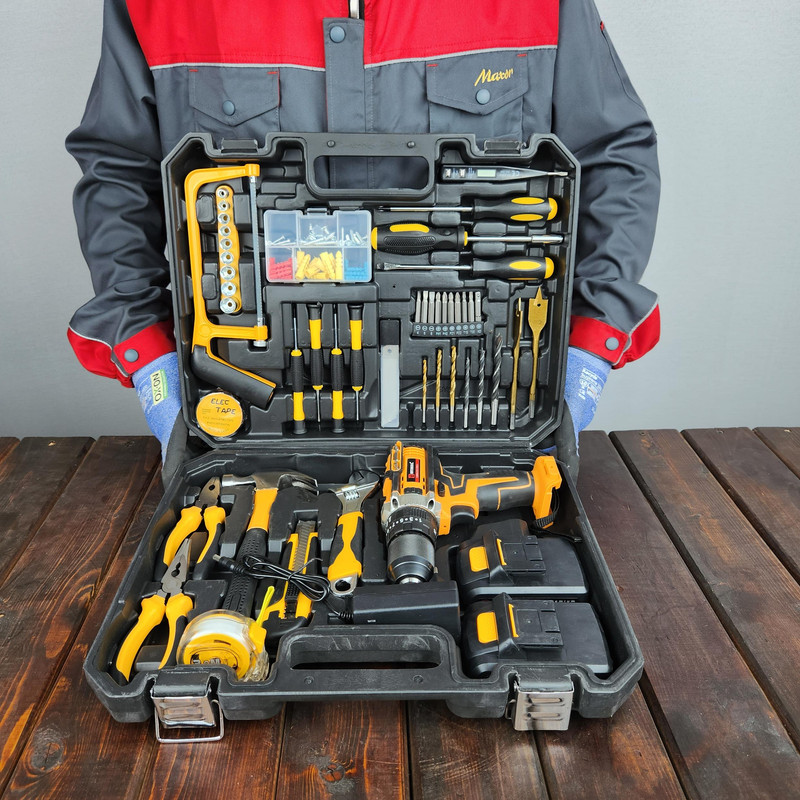 | سایر توضیحات | دستگاه مجموعه ای کامل به همراه انواع ابزار الات جهت تمامی امور خانگی، اداری و … می باشد که دریلی چکشی با سه نظام 13 میلیمتری تمام فلزی دارد که برای کارهای متعدد و سخت قابل استفاده است. گیربکس این دریل تقویت شده و بسیار قدرتمند است و از عهده امور مختلف بر میآید. این دستگاه دارای دو عدد باتری لیتیوم یون 98 ولت می باشد. دریل با گشتاور فوق العاده 35 الی 60 نیوتن متر می باشد. دارای دریل با سرعت 0 الی 600 و 0 الی 1500 دور بر دقیقه می باشد.باتری ها تولید جدید و دستگاه دارای دیمر و تنظیم سرعت می باشد. دارای چراغ جهت کار در محیط های تاریک می باشد قابلیت چپگرد و راستگرد دارد دارای کلیه ابزارهای مصرفی شامل؛ آچار فرانسه سایز 8، انبردست، دمباریک، چکش، بکس تک سایز 4 تا 13 میلیمتر، متر 3 متری، پیچ گوشتی دوسو و چهارسو سایز بزرگ، مته آهن سایز 3، 4 و 5 ، مته چوب سایز 3، 4 ،5 میلیمتر، مته برگی سایز 16 و 20 ، دارای 9 عدد نوک پیچ گوشتی، تبدیل نوک پیچ گوشتی به بکس، چسب برق، کاتر، فازمتر دیجیتال، 5 عدد تیغ کاتر، دو سایز پیچ گوشتی موبایلی دو سو و دو سایز پیچ گوشتی موبایلی چهارسو، کمان اره چوب و فلز، مجموعه سایزبندی پیچ و رولپلاک می باشدکیفیت عالی می باشد. |