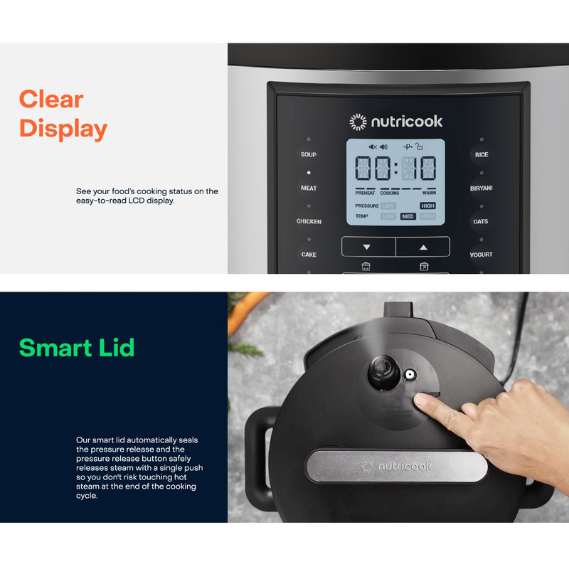 - امکانات: برنامه پخت، تایمر، دکمه های لمسی، سیستم ایمنی هوشمند، قابلیت تنظیم دما، قابلیت شستشوی قطعات در ماشین ظرفشویی، نمایشگر