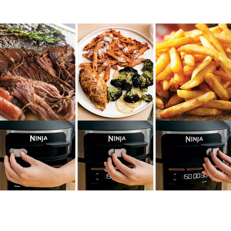11 عملکرد پخت و پز را در زیر یک SmartLid باز کنید – پخت با فشار، سرخ کردن با هوا، گریل، پخت، آبگیری، سرخ کردن/تخت کردن، بخارپز، آهسته پخت، ماست، سرخ کردن با بخار و بخارپز.