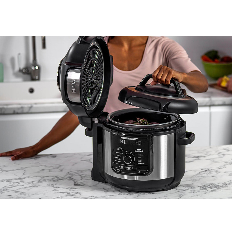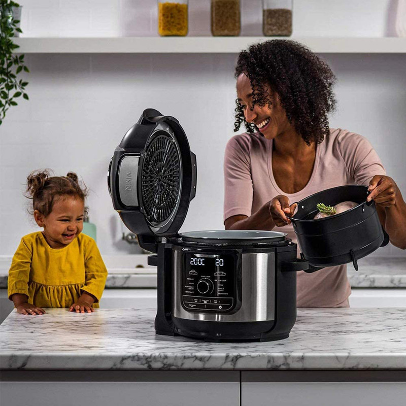 یک دستگاه که کارهای زیادی می کند! مهمانان خود را با 9 عملکرد پخت و پز در یک قابلمه تحت تاثیر قرار دهید، از جمله ( پخت تحت فشار، سرخ کردن با هوا، آرام پز، بخارپز، پخت/کباب کردن، سرخ کردن/تفت دهی، گریل، ماست و خشک کن میوه ). با Ninja Foodi MAX می توانید یک مرغ کامل 3 کیلوگرمی را بپزید و سپس سرخ کنید.
