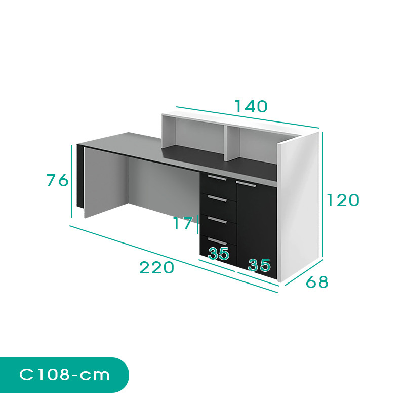 میز کانتر اسمردیس مدل C108 دارای 2 قفسه، 3 کشو و 1 کمد کاربردی می باشد.
