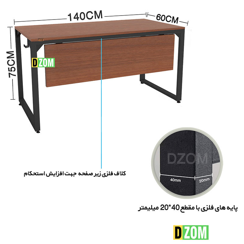 میز اداری دیزم DZom مدل مونتاژی TLD_front_140×60_BRN محصولی مونتاژی، سبک، شیک و در عین حال جذاب و کارآمد از سری تولیدات دیزم میباشد. این محصول بصورت سلف اسمبل (مونتاژی) تولید شده است. این میز حمل و نقل آسان و هزینه حمل مقرون به صرفه ای دارد. مشتری گرامی توجه نمایید محصولات برند دیزم (شماره ثبت 414013 اداره ثبت علائم تجاری) با کیفیت و بسته بندی اصلی تنها توسط فروشنده رسمی دیزم در دیجیکالا عرضه میشود، لطفاً از خرید کالای تقلبی از سایر فروشندگان خودداری فرمایید. این میز از پایه های فلزی با مقطع 20×40 میلیمتر و رنگ رویه الکترواستاتیک با ماندگاری و دوام بالا ساخته شده است. همچنین پایه های پیچی، قابلیت تنظیم نسبت به سطح زمین را دارد تا بهترین تراز جهت جلوگیری از تکان خوردن را ایجاد نماید. صفحه میز از جنس MDF درجه یک برجسته طرح چوب به رنگ قهوه ای می باشد. این محصول با طول 140cm، عرض 60cm و ارتفاع 75cm عرضه می شود. به این نکته توجه شود که تنوع رنگ انتخابی کالا تنها مربوط به رنگ پایه های فلزی میباشد.