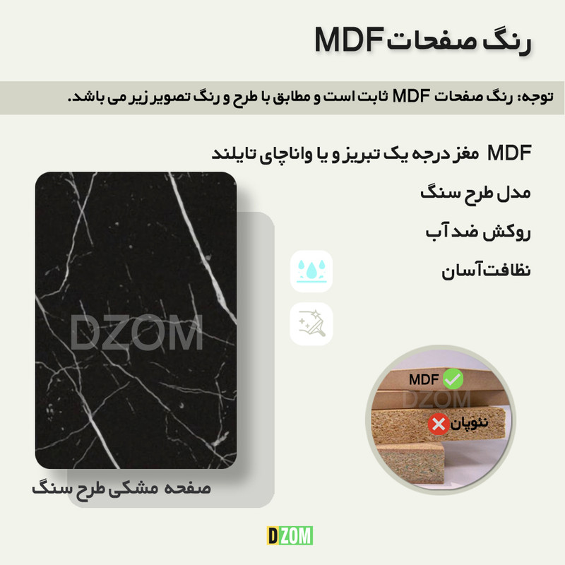 میز دیزم DZom مدل TLD-93D43-90SBONE محصولی سبک، شیک و در عین حال جذاب و کارآمد از سری تولیدات دیزم میباشد. این میز که قابلیت استفاده به عنوان میز تحریر، میز کامپیوتر، میز جلسه، میز کار و حتی به عنوان یک میز اداری را دارد، از پایه های فلزی با مقطع 20×30 میلیمتر و رنگ رویه الکترواستاتیک با ماندگاری و دوام بالا ساخته شده است. همچنین پایه های پیچی، قابلیت تنظیم نسبت به سطح زمین را دارد تا بهترین تراز جهت جلوگیری از تکان خوردن را ایجاد نماید. صفحه میز از جنس MDF درجه یک طرح سنگ و به رنگ مشکی می باشد. این محصول با طول 90cm، عرض 60cm و ارتفاع 75cm عرضه می شود. به این نکته توجه شود که تنوع رنگ انتخابی کالا تنها مربوط به رنگ پایه های فلزی میباشد و محصول به صورت کاملا مونتاژ شده و آماده استفاده برای مشتریان ارسال می گردد.