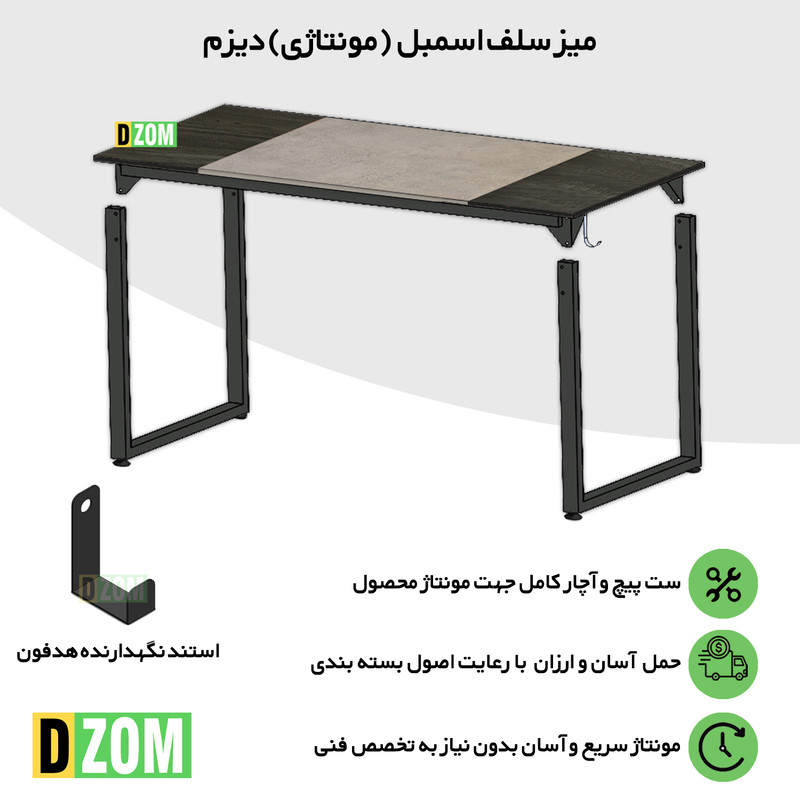 میز مدیریت دیزم DZom مدل مونتاژی TLD_asm_150×80_Tri_BAGR محصولی مونتاژی، سبک، شیک و در عین حال جذاب و کارآمد از سری تولیدات دیزم میباشد این محصول بصورت سلف اسمبل (مونتاژی) تولید شده است. این میز حمل و نقل آسان و هزینه حمل مقرون به صرفه ای دارد. این میز از پایه های فلزی با مقطع 50×30 میلیمتر و رنگ رویه الکترواستاتیک با ماندگاری و دوام بالا ساخته شده است. همچنین پایه های پیچی، قابلیت تنظیم نسبت به سطح زمین را دارد تا بهترین تراز جهت جلوگیری از تکان خوردن را ایجاد نماید. صفحه میز ترکیبی از MDF درجه یک برجسته طرح چوب به رنگ مشکی و MDF درجه یک به رنگ طوسی می باشد. این محصول با طول 150cm، عرض 80cm و ارتفاع 75cm عرضه می شود. به این نکته توجه شود که تنوع رنگ انتخابی کالا تنها مربوط به رنگ پایه های فلزی میباشد.
