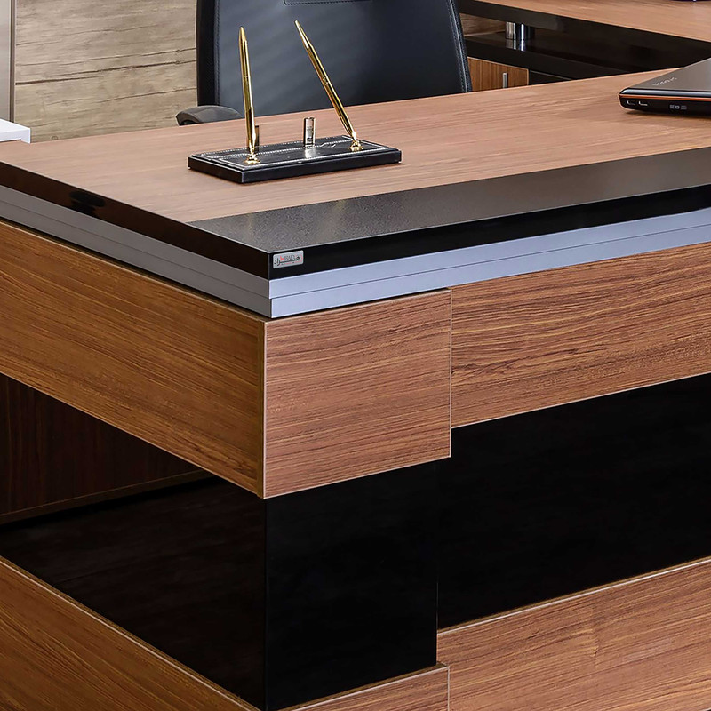 میز مدیریت هیراد مدل M905 در فضاهای کاری و دفاتر استفاده ‌می‌شود و یکی از وسایلی است که مدیران بیش از یک سوم از ساعات روز با آن سر و کار دارند. در هر شرکتی مدیر جایگاه مخصوصی دارد به همین علت انتخاب میز مدیریت اهمیت بسیار زیادی دارد.میز های مدیریتی به نسبت میز های کارمندی بزرگتر هستند و فضای کافی برای قرار دادن کامپیوتر، لوگوی شرکت و … دارد تا مدیر به راحتی به کارهایش رسیدگی کند.میز مدیریت، میز قدرت شما می باشد و می توانید در پشت آن قدرت خود را به نمایش بگذارید. اولین چیزی که به چشم افراد می آید یک دکوراسیون خوب و یک میز مدیریت عالی می باشد که می تواند به سازمان شما اعتبار دهد و شما را در ذهن افراد ماندگار کند.میز مدیریت هیراد مدل M905 ساخته شده از مواد اولیه مرغوب و مقاوم جهت استفاده در محیط کار می‌باشد. این میز زیبا می تواند جلوه خاصی به محیط کار شما بدهد.جنس این محصول ام دی اف می باشد ابعاد محصول به این شرح می باشد طول 200 عرض 180 ارتفاع 76