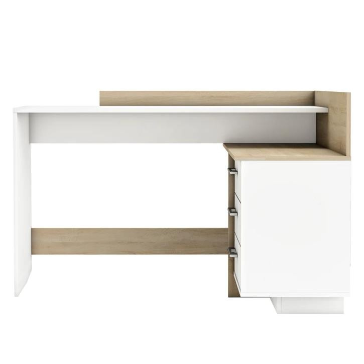 لطفا دقت فرمایید: دکوراسیون داخلی هیراد، طراح و تولید کننده اصلی این محصول با نام تجاری هیراد است. این محصول دارای لیبل برجسته هیراد می باشد. لطفا قبل از خرید نام فروشنده را بررسی فرمایید. این میز دارای 3کشو و قفسه می باشد. جنس محصول ملامینه می باشد. رنگ چوب در این محصول ثابت بوده و شما می توانید رنگ سفید بدنه را تغییر دهید. با انتخاب رنگ مناسب، میز هیراد مدل M916 خود را سفارش دهید
