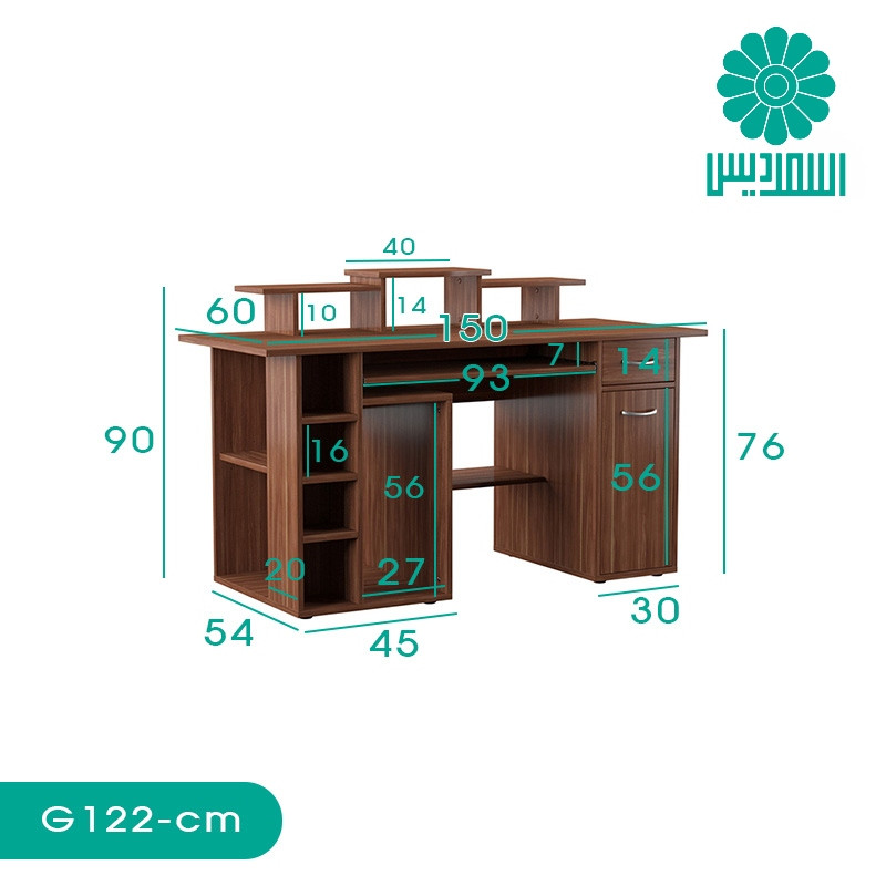 میز کامپیوتر اسمردیس مدل G122 دارای 4 طبقه(3 استند مانیتور و 1 استند کیبورد)، 6 قفسه ، 1 کشو و 1 درب با طراحی خاص، مقاوم و در تنوع رنگی بالا می باشد.