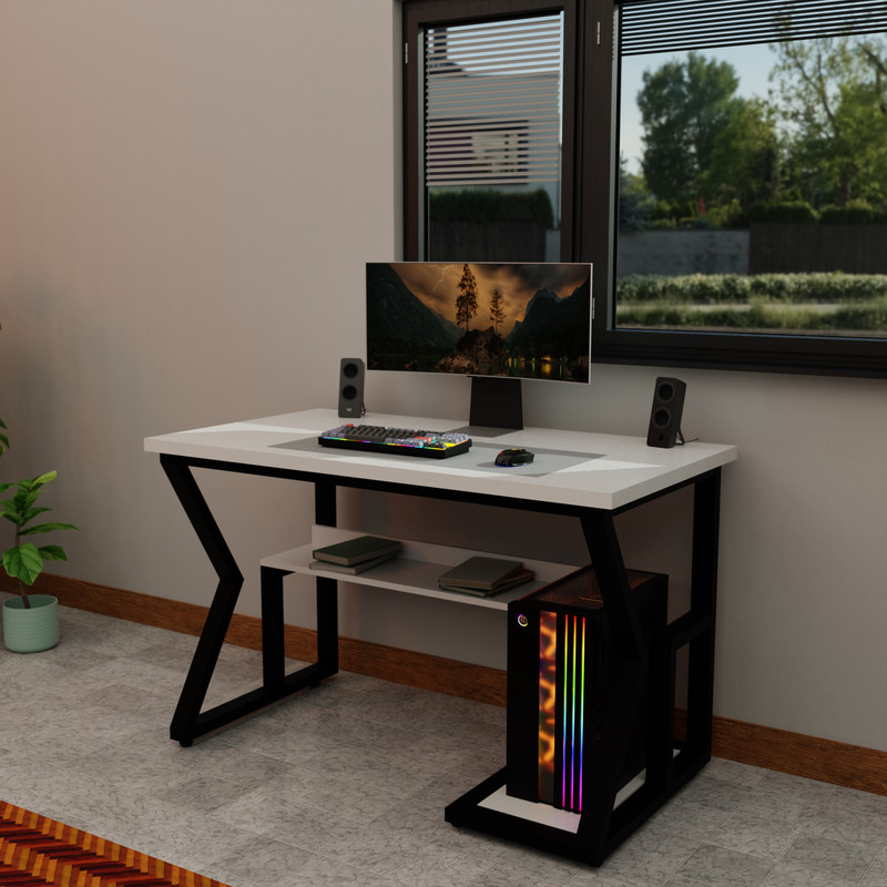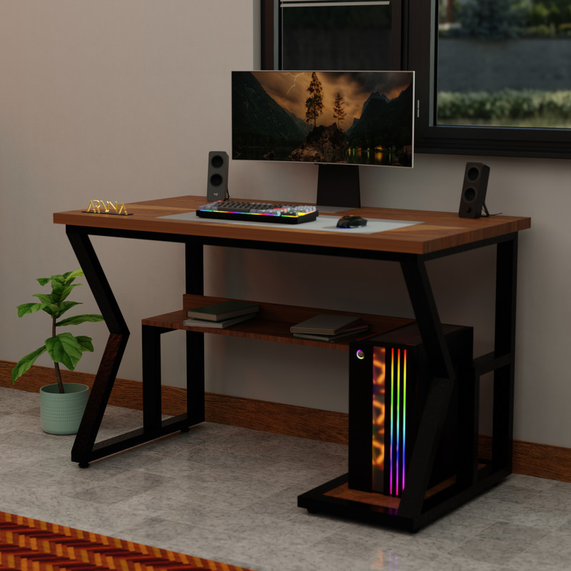 فرم خاص پایه‌ها با خطوط مورب و ساختار فلزی مشکی، استایلی مدرن و صنعتی به محیط شما می‌بخشد. صفحه‌ی اصلی و طبقات جانبی از MDF مقاوم با رنگ‌بندی متنوع ساخته شده‌اند و علاوه بر زیبایی، فضای کار بسیار کاربردی را فراهم می‌کنند.طراحی کاربردی این میز شامل فضای مخصوص کیس، طبقه‌ی نگهدارنده کتاب یا لوازم جانبی، و سطح بزرگ برای مانیتور و تجهیزات دیگر است. مدل زاگرس انتخابی ایده‌آل برای کسانی است که به‌دنبال ترکیبی از زیبایی، عملکرد و دوام هستند.