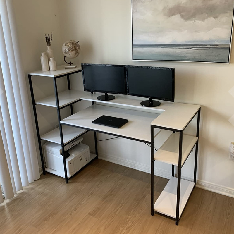 میز کامپیوتر مدل Faro_8703 محصولی سبک، شیک و در عین حال جذاب و کارآمد میباشد. این محصول از پایه های فلزی با مقطع 20×20 میلیمتر و رنگ رویه الکترواستاتیک با ماندگاری و دوام بالا ساخته شده است. همچنین پایه های پیچی، قابلیت تنظیم ارتفاع نسبت به سطح زمین را دارد تا بهترین تراز جهت جلوگیری از تکان خوردن را ایجاد نماید. صفحه محصول از جنس MDF درجه یک می باشد. این محصول با طول کلی140cm(صفحه وسط 85cm و قفسه های اطراف 25و30)،عرض 60cm ،ارتفاع تا سطح میز 73cm (ارتفاع قفسه کوچک 83cm و ارتفاع قفسه بزرگ 110cn)عرضه می شود. به این نکته توجه شود که تنوع رنگ انتخابی کالا تنها مربوط به رنگ چوب MDF میباشد و رنگ پایه فلزی ثابت(مشکی سوپر مات) است. محصول بصورت اسمبلی میباشد و در بسته بندی همراه با پیچ های آلن که توسط آن، کار اسمبل میشود برای مشتریان ارسال می گردد.