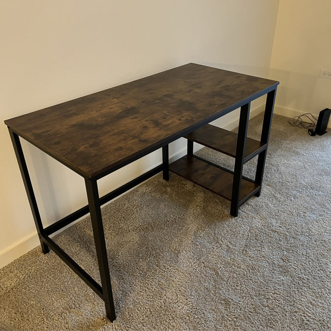 سطح رویه میز از ملامینه MDF با روکش طرح چوب و نمای وینتیج ساخته شده است که جلوهای گرم و طبیعی دارد. این سطح، نهتنها فضای کافی برای قرار دادن لپتاپ، مانیتور، کتاب و لوازم جانبی فراهم میکند، بلکه در برابر خط و خش و لکه مقاوم است. همچنین اسکلت فلزی با رنگ مشکی مات، علاوهبر استحکام بالا، به زیبایی محصول نیز افزوده است.
