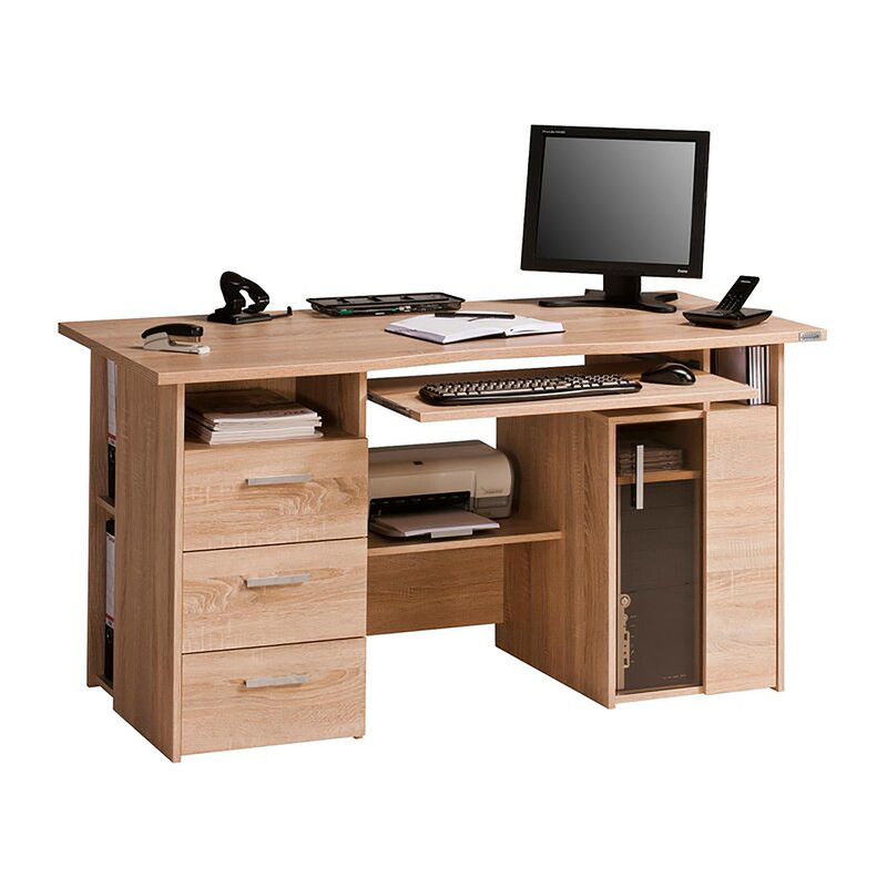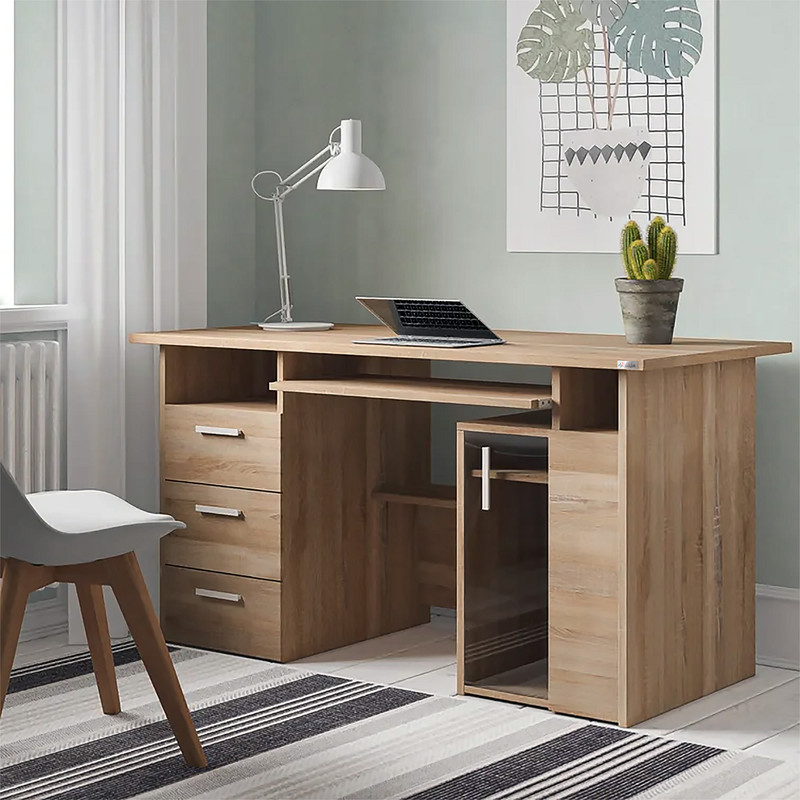 لطفا دقت فرمایید: دکوراسیون داخلی هیراد، طراح و تولید کننده اصلی این محصول با نام تجاری هیراد است. این محصول دارای لیبل برجسته هیراد می باشد. لطفا قبل از خرید نام فروشنده را بررسی فرمایید.میز کامپیوتر هیراد مدل R102 با ظاهری ساده و زیبا، میزی کارآمد و مناسب جهت اتاق کار و یا اتاق فرزند شماست.با توجه به سادگی ظاهر، قابل ست شدن با انواع دکوراسیون در منزل می باشد.این محصول مناسب کامپیوتر های خانگی و لپتاپ است. طراحی شیک این محصول باعث شده انتخاب خوب و مناسبی برای افراد سخت پسند که با کمبود فضا در محیط کار یا اتاق مواجه هستند باشد.این محصول دارای سه کشو یک کمد جای کیس و کیبورد میباشد.که قابلیت جابجایی با یکدیگر را دارا می باشند پس از ثبت سفارش طی تماس تلفنی از طرف مجموعه هیرادکالا می توانید جهت دلخواه خود را انتخاب نمایید و میز هیراد مدل R102 را سفارش دهید.ابعاد این محصول به شرح زیر می باشد:ارتفاع : 76سانتی متر- طول : 144سانتی متر- عرض : 67سانتی متر جنس این محصول ام دی اف می باشد .