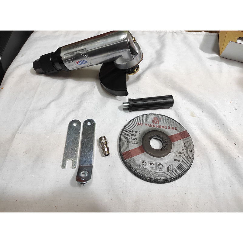 مینی سنگ بادی WUFU مدل WFC-1219 ابزاری دقیق و کاربردی جهت پرداخت کاری، برش زنی، از بین بردن زنگ زدگی، پاک کردن جای جوش و … می باشد که در صنایع بسیاری مورد استفاده قرار می گیرد. این مینی فرز بادی دارای دستگیره دوم می باشد که باعث افزایش تسلط کاربر در حین کار با این دستگاه می شود. کلید استارت مینی فرز بادی WFC-1219 در انتهای دستگیره به صورت گازی طراحی شده است و مزیتی که دارد از روشن شدن ناگهانی و بروز خطرات ناگهانی جلوگیری می کند. سرعت چرخش آزاد این ابزار برابر با 10000 دور در دقیقه می باشد. از مزایای این مینی فرز بادی بدنه فلزی آن می باشد که در برابر ضربه و خوردگی بسیار مقاوم است. وزن و ابعاد ایده آل به ترتیب 1.78 کیلوگرم و 208 میلیمتر این دستگاه باعث شده تا کاربر در طولانی مدت بدون احساس خستگی با این ابزار کار بکند. همچنین مصرف باد این مینی فرز نسبت به سایر برند ها بهینه تر بوده و برابر با 169 لیتر در دقیقه می باشد.
