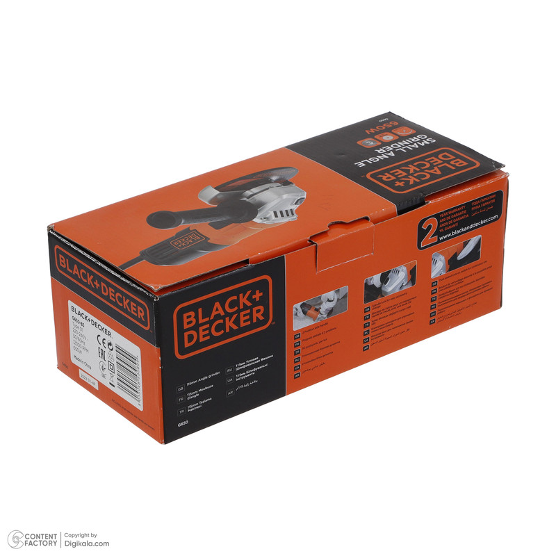 مینی فرز بلک اند دکر مدل G650-B5 دارای موتوری با توان 650 وات است. مینی فرز بلک اند دکر دارای دور 12000 دور در دقیقه می باشد. وزن مینی فرز 650 وات بلک اند دکر مدل G650-B5 برابر با 1.7 کیلوگرم می باشد. همچنین اندازه قطر صفحه این دستگاه مینی فرز بلک اند دکر 115 میلی متر است. میزان سرعت دستگاه مینی فرز بلک اند دکر برای انجام کار بر روی فلزات بسیار عالی است و می توان از آن برای برش و سایش استفاده کرد. سنباده زنی و برش کاری فلزات اگر با ابزارهای دستی صورت گیرد، کاری بسیار زمان بر و خسته کننده است. به وسیله دستگاه فرز بلک اند دکر می توان برش کاری و سنباده کاری را با سرعت بالاتر انجام داد. بر روی دستگاه مینی فرز بلک اند دکر مدل G650-B5، با توجه به برش و یا سایش سطوح مختلف باید صفحه ای با قطر مناسب انتخاب کرد. مینی فرز بلک اند دکر برای فضاهای کوچک و فضاهایی که نیاز به دقت بالا دارند استفاده می شود. از مینی فرز بلک اند دکر مدل G650-B5 می توان برای برش سنگ های مختلف، برش پلاستیک، برش کاشی و سرامیک، تیز کردن ابزارآلات فلزی، پرداخت کردن فلزات و زنگ زدایی از فلزات و… اشاره کرد. مینی فرز بلک اند دکر مدل G650-B5وزن کمی دارد و به راحتی می توان آن را حمل و جا به جا نمود. رعایت نکاتی از قبیل استفاده از وسایل و تجهیزاتی مانند کلاه ایمنی، عینک ایمنی و دستکش استفاده کرد. باید با حواس جمع و تمرکز بالا از دستگاه مینی فرز G650-B5بلک اند دکر استفاده کرد. از استقرار و محکم بودن مینی فرز باید قبل از کار اطمینان پیدا کرد.