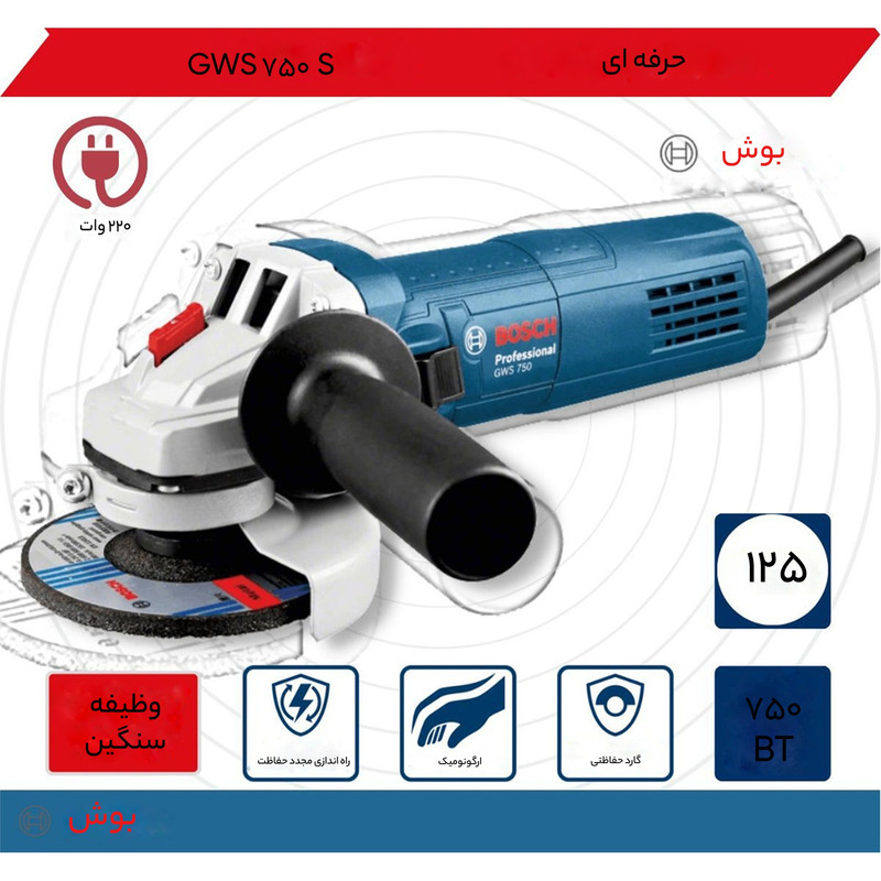محصول فوق یکی از اعضای کوچک خانواده‌ی فرزها بوده که برای انجام کارهایی سبک‌تر مورد استفاده قرار می‌گیرد. این دستگاه را شرکت «بوش» (Bosch) با نام مینی‌فرز «GWS 750 S» به بازار عرضه کرده است. این محصول انرژی مورد نیاز خود را از برق شهر تامین می‌کند و به یک موتور 750 واتی مجهز شده است. سرعت چرخش این محصول ثابت بوده و مقداری برابر 2800 الی 11000دور بر دقیقه دارد. صفحه‌ی استانداردی که می‌توان روی این محصول نصب کرد باید قطری 115 میلی‌متری داشته باشد و بخش مرکزی آن سایز M14 باشد. از مزایای این مینی‌فرز می‌توان دور متغیر این دستگاه اشاره کرد.وجود دور متغیر این امکان را به کاربر میدهد تا بتواند از انواع صفحه ها استفاده نماید و یا با قرار دادن دیمر دستگاه بر روی پایین ترین دور تبدیل به دستگاه پولش گردد. حفاظ فلزی نیز از برخورد احتمالی براده‌ها و یا صفحه با کاربر جلوگیری می‌کند. شرکت بوش دو محل برای نصب دسته‌ی کمکی در نظر گرفته تا کاربر بتواند در حین کار دستگاه را به شکل مناسب‌تری در اختیار بگیرد.