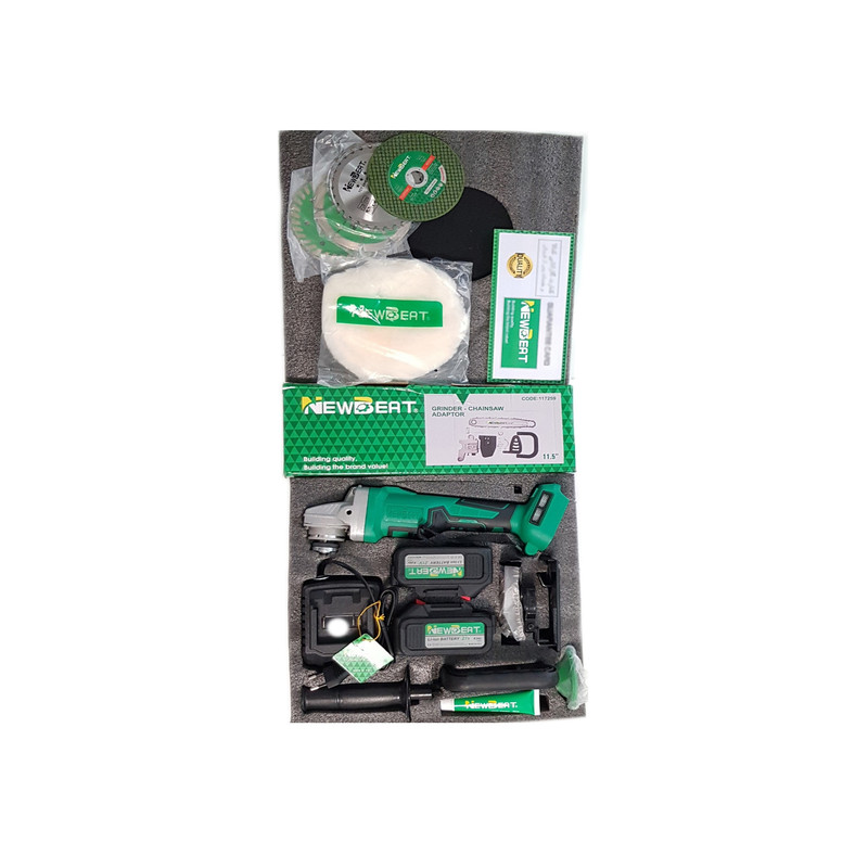 با توجه به استقبال زیاد از کیفیت بالای دستگاه مینی فرز شارژی نیوبیت ، این شرکت اقدام به تولید مدلی جدید به صورت سه کاره ((مینی فرز،پولیش، اره درخت بری)) نمود که کاربران علاوه بر مینی فرزی با کیفیت با موتور سه حالته براشلس، پولیش و اره درخت بری به همراه کلیه لوازم آن به همراه داشته باشند. این دستگاه با 2 عدد باتری 21 ولت 4 آمپر ساعت و موتور براشلس با سرعت سه حالته 1500 و 3500 و 7000 RPM عرضه شده است. پک کارتن دستگاه شامل چهار صفحه برش (استیل بر، آهن بر، سرامیک بر، نجاری) ، دو دسته کمکی (منحنی و ساده) ، روغن گیریس 25 میلی لیتر، پد پشمی پولیش ، محافظ صفحه برش ، آچار سنگ و هم چنین پک کامل مخصوص ست درخت بری ( اره ) میباشد.