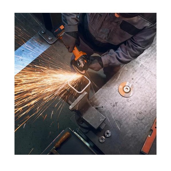 مینی فرز شارژی مدل CCG 18-125-7 AS یک مینی فرز حرفه ای مناسب کارهای سبک و نیمه سبک و روزمره می باشد. قدرت این مینی فرز معادل 700 وات بوده و این مینی فرز با استفاده از موتورهای Brushless عمر بسیار طولانی تری نسبت به محصولات مشابه دارد.موتور قدرتمند بدون ذغال، که می تواند به راحتی نیازهای کار های روزمره و سبک و نیمه سبک را به ویژه در ترکیب با فناوری باتری ProCORE 18 V برطرف کند. این دستگاه از باتری های Li-ion فاین با نام ProCORE استفاده می نماید. این باتری ها توان تامین نیروی مداوم را داشته و 87 % نسبت به باتری های Li-ion مشابه جریان بیشتری را تامین می نمایند و لذا زیر بار عملکرد مناسب تری را دارد. توجه فرمایید این ابزار با باتری معمولی لیتیومی هم قابل استفاده است اما عملکرد ابزار زیر بار کاهش خواهد یافت. سرعت این مینی فرز بین 11,000 دور در دقیقه قابل تنظیم بوده و قطر دیسک سنگ زنی آن 125 میلیمتر می باشد. این دستگاه دارای ویژگیهای گسترده حفاظت از کاربر شامل استارت نرم، حفاظت راهاندازی مجدد، حفاظت الکترونیکی اضافه بار می باشد. شرکت فاین (FEIN) در سال 1867 میلادی در شهر اشتوتگارت آلمان آغاز به کار و در سال 1895 میلادی اقدام به اختراع اولین دریل برقی دستی دنیا و در سال 1906 اولین سنگ دستی دنیا را اختراع نمود. این شرکت در سال 2016 میلادی برای اولین بار مینی فرز با قدرت 1700 وات را روانه بازار کرد و همواره در نوآوری و اختراعات جدید صنعت ابزار دنیا پیشرو بوده است. علی رغم گذشت 155 سال از شروع تولیدات شرکت فاین، این شرکت قویا به خاستگاه خود یعنی کشور آلمان متعهد بوده و بیشتر محصولاتش را در Schwäbisch Gmünd کشور آلمان تولید می نماید.