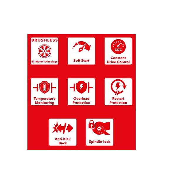 -شماره فنی: 495255-ساخت چین تحت لیسانس فلکس آلمان -بکارگیری کنترلر پیشرفته میکروپروسسور شامل Soft Start، Restart protection، CDC(Constant drive control) ,Anti-Kickback، temperature monitoring ,Overload protection-قفل اسپیندل -تنظیم گارد بدون نیاز به ابزار -موتور براشلس -محافظت موتور و گیربکس در مقابل گرد و غبار-طراحی دسته خاص جهت کاهش مقاومت هوا برای دست گیری عالی -طراحی جمع و جور، سبک، باریک و ارگونومیک -طول کابل: 4 متر-توان ورودی:1300 وات-توان خروجی:910 وات-حداکثر قطر صفحه:125 میلیمتر-حداکثر سرعت بدون بار:10000 دور در دقیقه-وزن:2 کیلوگرم