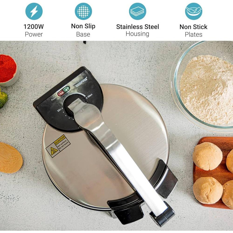 برند جیپاس GEEPAS یکی از عرضه کنندگان لوازم خانگی و برقی است که با بیش از 36 سال تجربه ، در اغلب قاره ها اعم از آسیا و اروپا از استقبال بسیار خوبی برخوردار بوده است.دستگاه نان پز جیپاس مدل GCM6125 یکی از محصولات این شرکت است که می تواند برای پخت نان در منزل و یا رستوران های کوچک به کار گرفته شود . قسمت اصلی دستگاه از دو کفه دایروی 10 اینچی ( 25.4 سانتی ) با روکش نچسب که هر دو سطح از سیستم گرمایش بطور مجزا برخوردارند تشکیل شده است (سطح پایینی و بالایی یا گریل ) که با قرار دادن خمیر در میان دوسطح و قراردادن دوکفه بر روی آن که با یک اهرم بر روی هم فشرده می شوند خمیر صاف و آماده برای پخت می شود و نیازی به پهن کردن بر روی کفه نمی باشد . با تنظیم دمای ترموستات می توان گرمای مورد نیاز را با توجه به نوع پخت در دستگاه ایجاد کرده و بعد از مدت زمان چند دقیقه که این زمان به سلیقه شخصی می تواند از نان با پخت نرم تا برشته تغییر کند ، نان قابل استفاده خواهد بود .