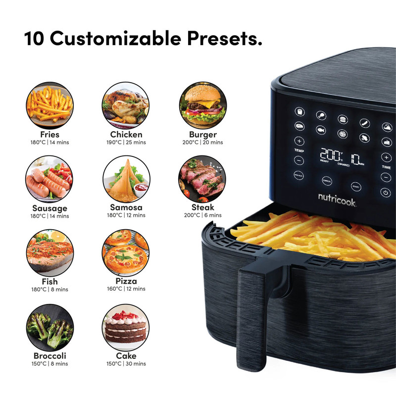 سبد از جنس استیل با روکش نچسب فاقد مواد شیمیایی PFOA و BPA / دارای تکنولوژی Shake reminder که زمان هم زدن مواد را یادآوری می کند / دارای 10 برنامه پخت پیش فرض / دارای برنامه Pre heat برای گرم کردن محفظه قبل از شروع پخت