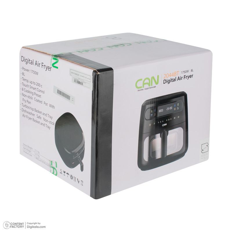 هواپز کن، مدل 2044BT کمک میکند مواد غذایی را بدون روغن درست کنید یا برای پخت یک سری از غذاها از کمترین میزان روغن استفاده کنید. این محصول با توان حرارتی 1750 وات از جمله لوازم آشپزخانه پرطرفدار است که امکان پخت غذاها را تا دمای 200 درجه سانتیگراد مهیا میکند. مدل 2044BT هواپزی است با 8 برنامه پخت که حجم 8 لیتری دارد؛ این حجم در مقایسه با هواپزهای مشابه موجود در بازار، حجم بالایی محسوب میشود.
