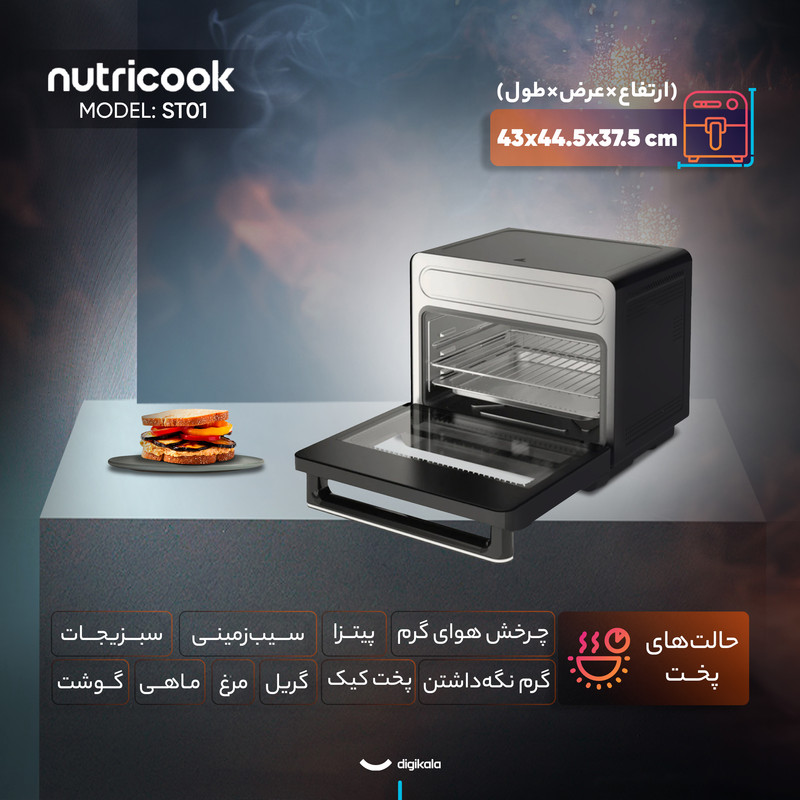 | حالتهای پخت | گریل، پخت کیک، پیتزا، گرم نگه داشتن، چرخش هوای گرم، ماهی، مرغ، سیبزمینی، گوشت، سبزیجات |