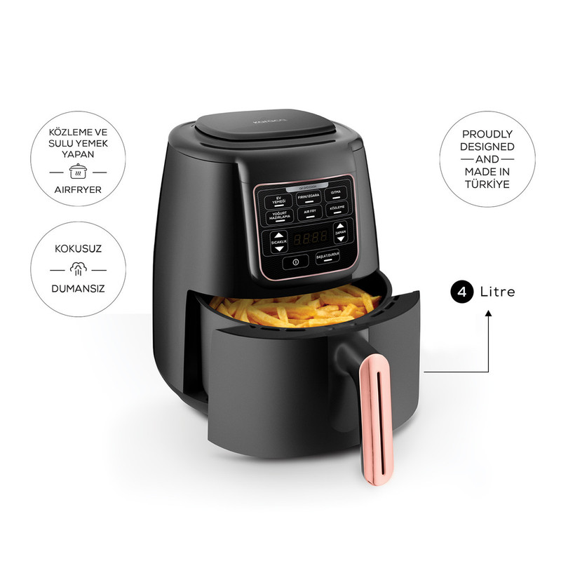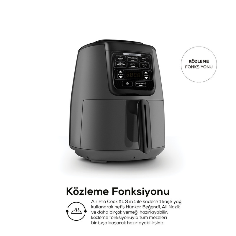 هواپز و سرخکن 3 در 1 کاراجا Air Pro Cook XL دستگاهی هوشمند و کاربردی برای تمام کسانی است که به دنبال غذای خوشمزه و در عین حال سالم هستند. با این دستگاه میتوانید بدون استرس و زحمت زیاد، انواع غذاها را بهراحتی تهیه کنید؛ چه قصد داشته باشید یک شام خاص با طعم باربیکیو داشته باشید، چه یک شیرینی خانگی لذیذ، یا حتی یک وعده ناهار سبک با سبزیجات تازه. Karaca Air Pro Cook XL با فناوری Circulation Air Tech، هوای گرم را بهصورت یکنواخت درون محفظه پخش میکند و به این ترتیب، غذاها بهخوبی و بدون نیاز به روغن زیاد پخته میشوند. تنها با یک قاشق روغن، میتوانید مرغی ترد و آبدار، سیبزمینی سرخکردهای مثل روزگار قدیم، سبزیجاتی پرطراوت و حتی کیک و شیرینیهایی با پوسته کرم را تهیه کنید.این محصول با ظرفیت ۴ لیتری و قدرت ۱۵۵۰ واتی، زمان پخت را بهطور چشمگیری کاهش میدهد و به همین دلیل گزینهای عالی برای کسانی است که زمان کمی برای آشپزی دارند. صفحه نمایش دیجیتال کاربرپسند، همراه با گزینههای تنظیم دما از ۶۰ تا ۲۱۰ درجه و زمان پخت تا ۱۲ ساعت، کار با دستگاه را بسیار ساده کرده است. همچنین، دکمه “گرم کردن” به شما این امکان را میدهد تا وعدههای قبلی خود را دوباره گرم کنید و طعم اولیه آن را حفظ کنید.Air Pro Cook XL نه تنها برای سرخ کردن مناسب است، بلکه قابلیتهای دیگری مانند تهیه ماست خانگی، خشک کردن میوه و سبزیجات، پخت گوشتهای مختلف مانند کباب جنگلی، کوفته ازمیر، تردی مخصوص و حتی پخت انواع دسرها و شیرینیها را نیز دارد.برای تمیز کردن هم نگرانی ندارید؛ چرا که سبد دستگاه با فناوری Easy Wash Tech طراحی شدهاند و قابل شستشو در ماشین ظرفشویی هستند.علاوه بر این، دستگاه دارای سیستم ایمنی چهارگانه است که از بروز مشکلاتی مانند گرمای بیش از حد یا قرار نگرفتن صحیح سبد جلوگیری میکند. اگر کاسه بهدرستی قرار نگرفته باشد، دستگاه پخت را متوقف میکند تا از هرگونه خطر احتمالی جلوگیری شود.این هواپز انرژی کمتری نسبت به فر معمولی مصرف میکند و تقریباً 74 درصد انرژی کمتری را به مصرف میرساند.Karaca Air Pro Cook XL 3 in 1 گزینهای ایدهآل برای کسانی است که به دنبال یک دستگاه چندکاره، سریع، ایمن و البته سالم هستند.
