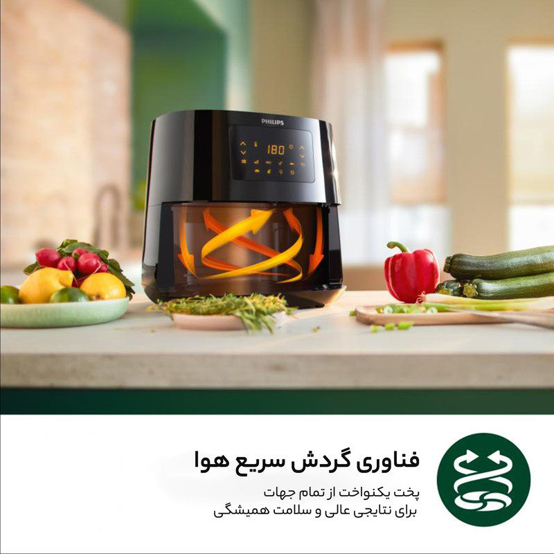 سرخکن بدون روغن فیلیپس HD9270، با ظرفیت ۶.۲ لیتری، میراث نوآوری فیلیپس را در ارائهی آشپزی سالم و هوشمند به خانهی شما میآورد. این دستگاه پیشرفته، برای خانوادههای تا ۶ نفر طراحی شده تا طعم بینظیر غذاهای ترد و طلایی را با کمترین میزان چربی تجربه کنند.
