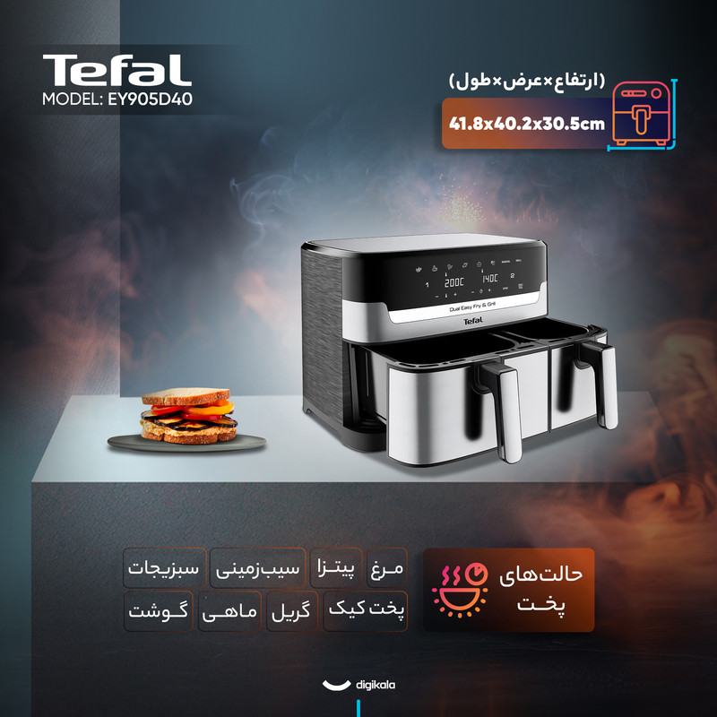 تفال EY905D40، با نوآوری در پخت دوگانه و همزمان، نه تنها یک سرخکن، بلکه یک دستیار آشپزی هوشمند برای خلق وعدههای غذایی متنوع، سالم و بیدردسر برای تمام خانواده است.
