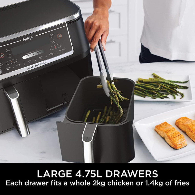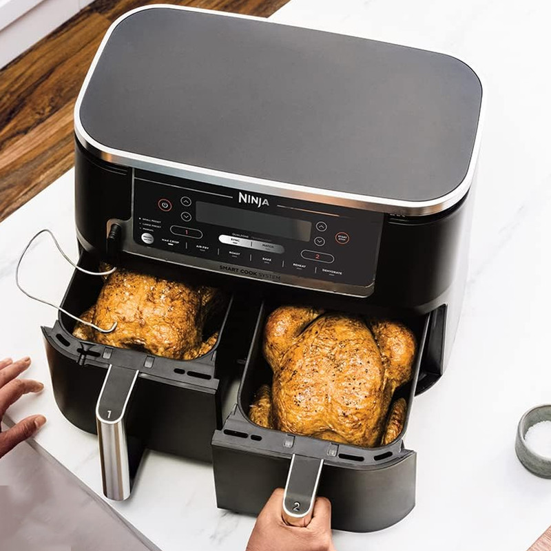 | سایر توضیحات | اعلام هشدار در پایان برنامه / دارای 6 برنامه ترد کردن، کباب کردن، پختن، گرم کردن مجدد، خشک کردن میوه و سبزیجات و سرخ کردن بدون روغن یا با روغن کم / پخت ۷۵ درصد سریعتر از فرهای فندار / عملکرد MAX CRISP پخت سریعتر برای داشتن غذای گرمتر و تردتر با استفاده از 2 سبد مجزا / عملکرد همگامسازی برای پایان پخت غذاها با زمان های مختلف پخت / دارای یک پروب هوشمند برای سنجش دمای پخت و ۲ عدد بشقاب کریسپر با روکش نچسب |