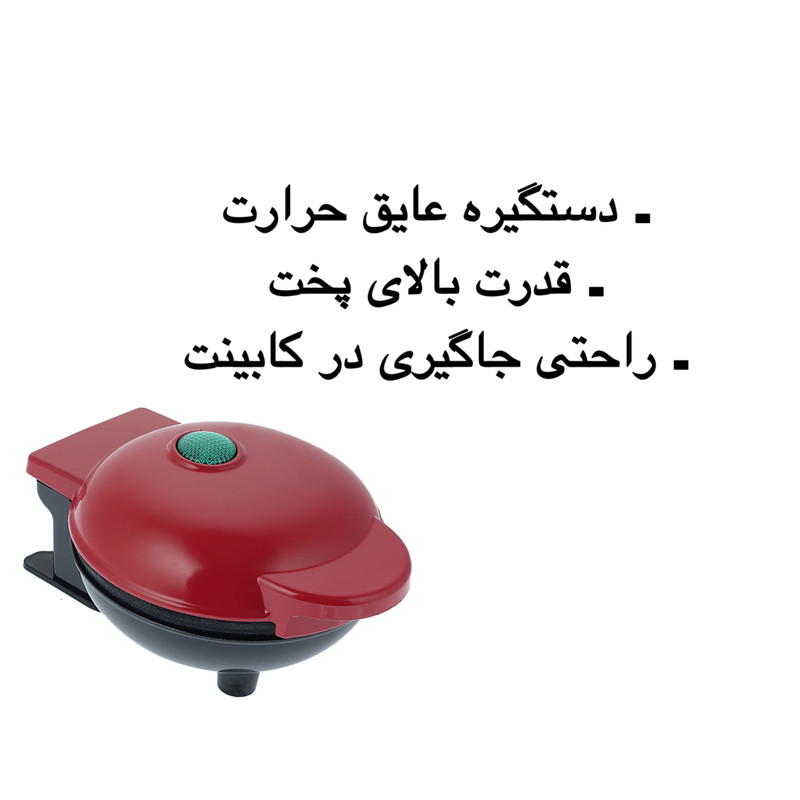 | سایر توضیحات | وافل ساز مینی هارت به ابعاد 13x16x6 بعد از هر بار پخت و ریختن مایع وافل قادر به تحویل یک عدد وافل قلبی شکل به مصرف کننده میباشد. صفحه نچسب و وزن و ابعاد پایین این محصول از نقاط قوت به شمار میرود جرا که به سادگی قابل حمل و جا دادن در اشپزخانه مصرف کننده میباشد. |