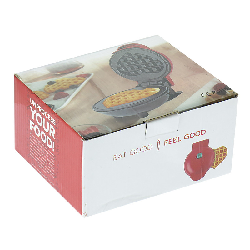 - سایر توضیحات: وافل ساز مینی هارت به ابعاد 13x16x6 بعد از هر بار پخت و ریختن مایع وافل قادر به تحویل یک عدد وافل قلبی شکل به مصرف کننده میباشد. صفحه نچسب و وزن و ابعاد پایین این محصول از نقاط قوت به شمار میرود جرا که به سادگی قابل حمل و جا دادن در اشپزخانه مصرف کننده میباشد.
