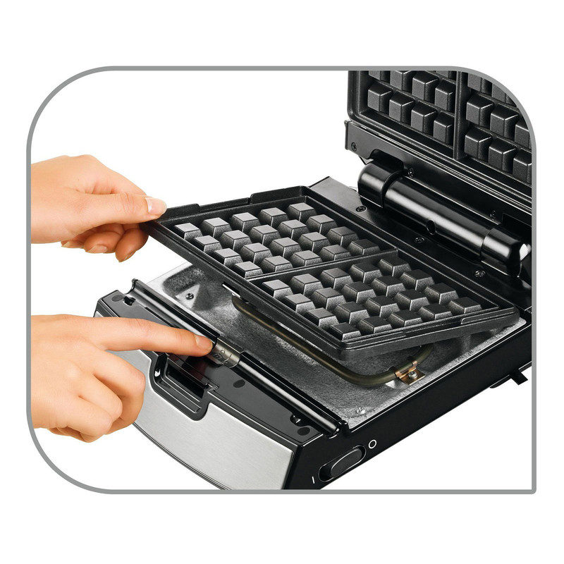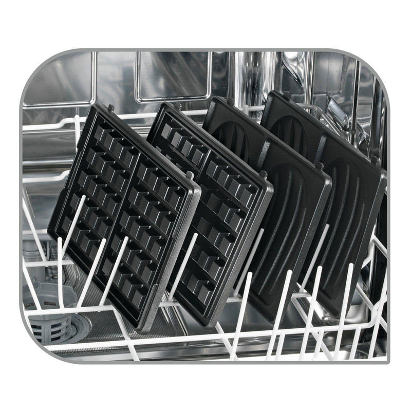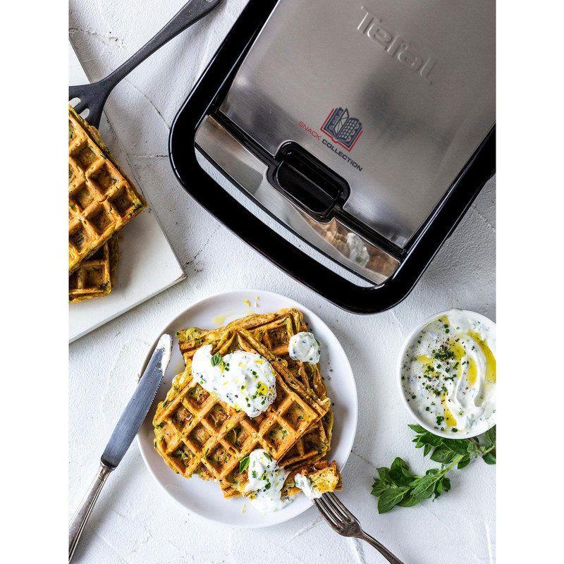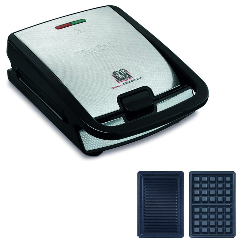 وافل ساز و گریل تفال مدل SW857D12، دستگاهی فوق العاده با کیفیت از شرکت فرانسوی تفال می باشد که کاملاً برای تهیه تنقلات مختلف مناسب می باشد که با روکش برجسته از جنس استنلس استیل با ظاهری ممتاز مزین شده. این محصول با قدرت 700 وات به شما این امکان را می دهد تا غذاهای خوشمزه و کاملاً برشته درست کنید. دما به سرعت افزایش می یابد و عملکرد بسیار ساده ای را ارائه می دهد، بدون تنظیمات پیچیده برای برنامه ریزی! صفحات قابل جابجایی و تعویض بسیار مبتکرانه و بسیار کاربردی هستند تا لذت ها را متفاوت نمایند. به دلیل روکش نچسب و صفحات قابل شستشو در ماشین ظرفشویی، تمیز کردن آن آسان می باشد. این وافل ساز و گریل هوشمند دارای یک چراغ نشانگر است که به شما می گوید صفحات داغ هستند. چیزی که جذابیت وافل ساز و گریل Tefal Snack Collection SW857D12 را می سازد، انتخاب گسترده صفحات موجود به عنوان مکمل است. این دستگاه دارای 2 صفحه برای وافل و گریل می باشد که به لطف آنها می توان طیف وسیعی از غذاها، انواع شیرینی ها، دونات و بسیاری از دیگر کیک ها را تهیه کرد. بطوریکه طعم و مزه وعده های غذایی را جذاب تر می سازد! تفال یک قفل بر روی دستگاه تعبیه کرده که استفاده ایمن آن را تضمین می کند.